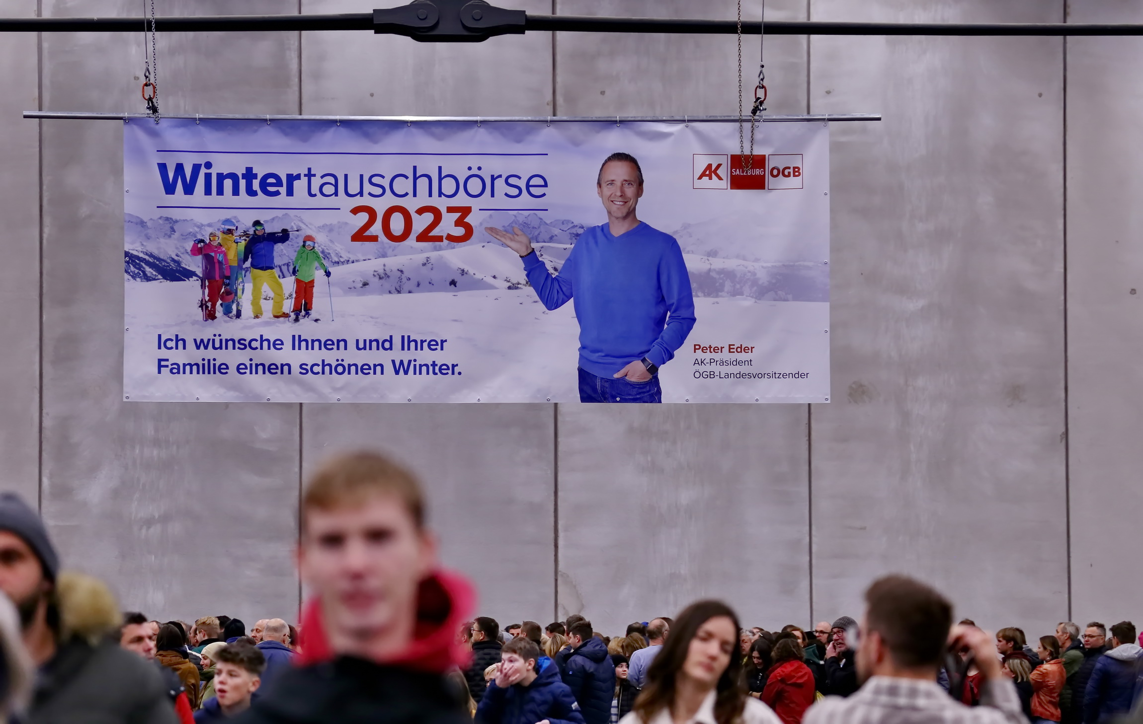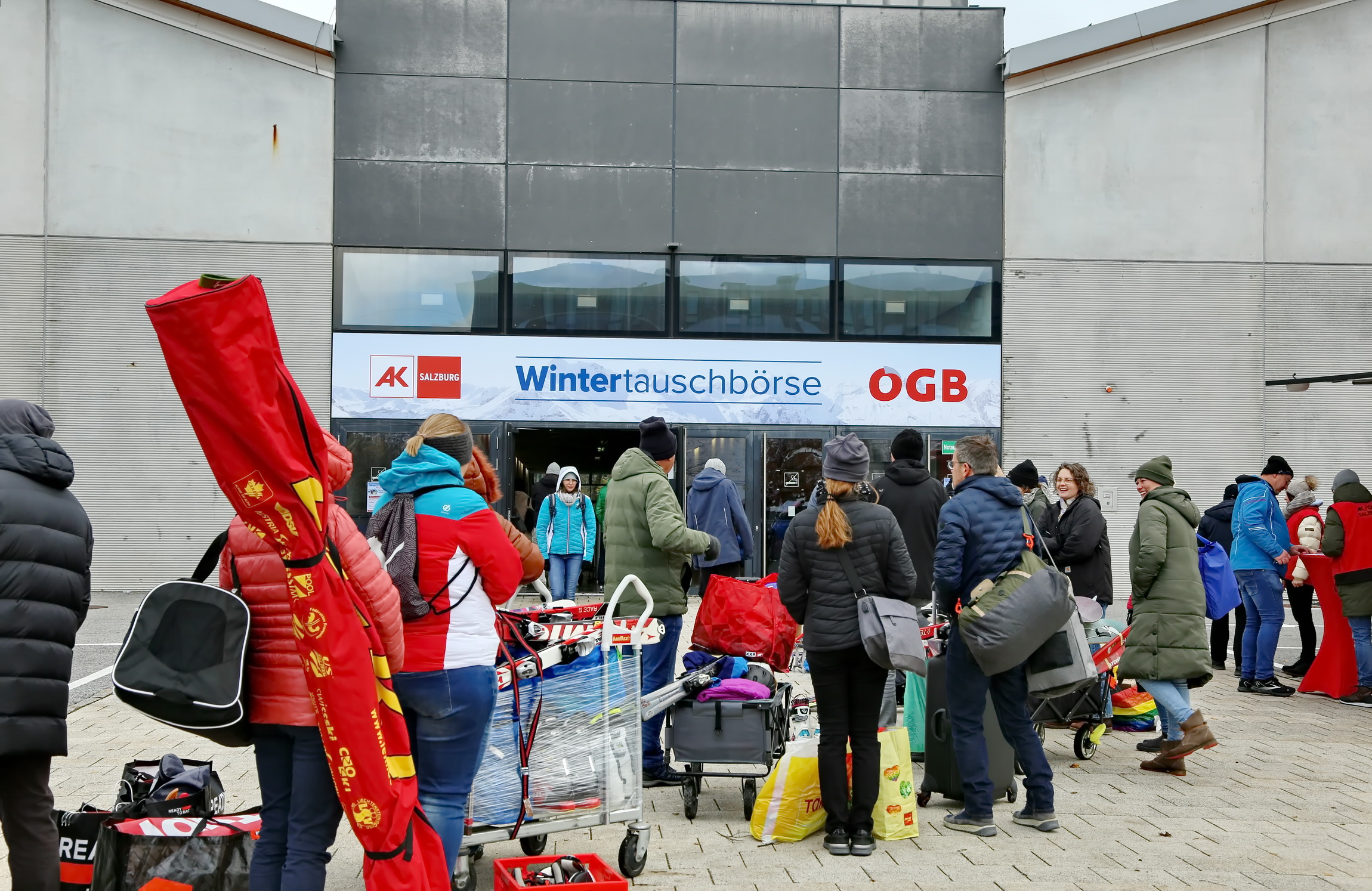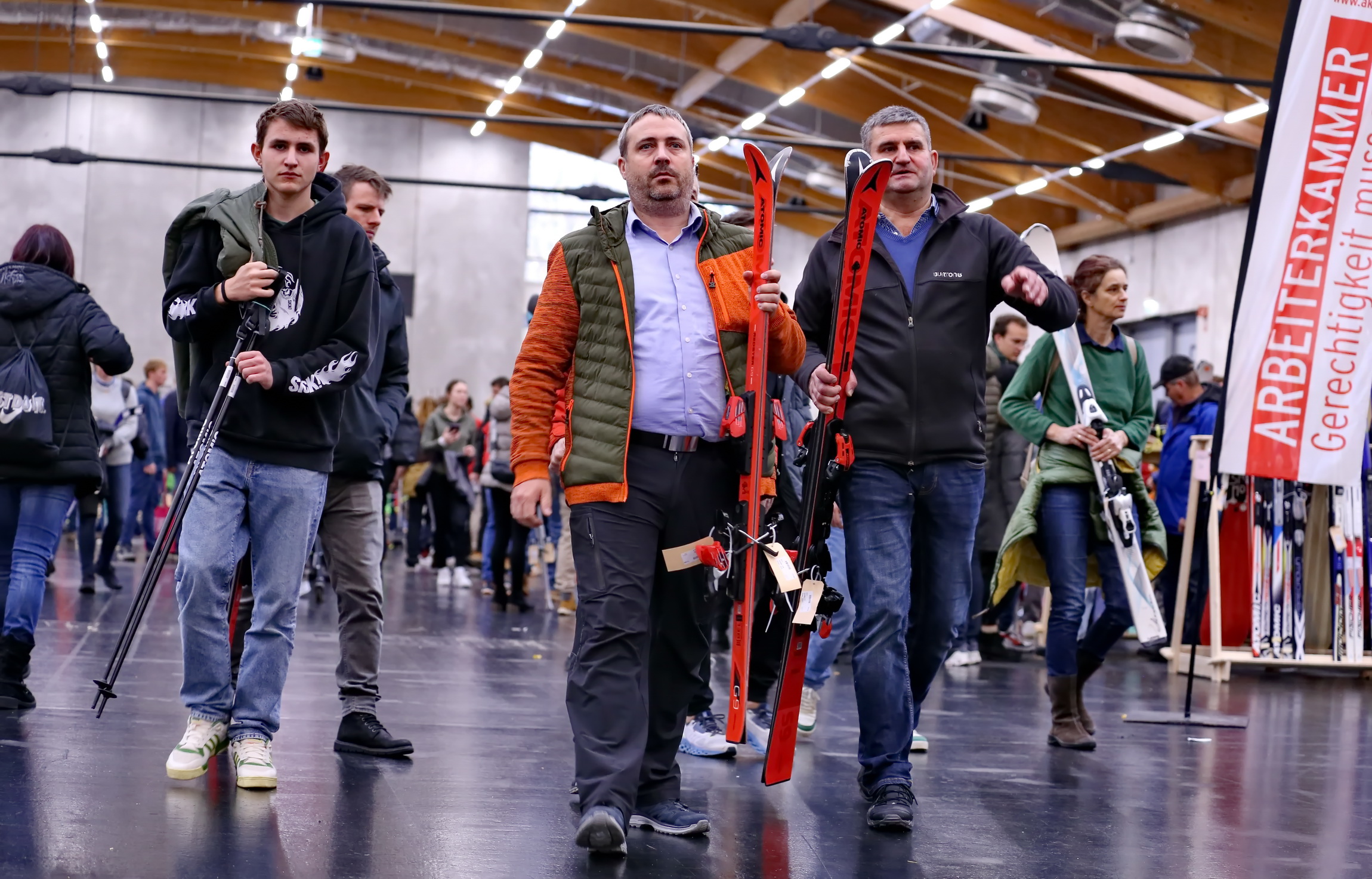 Seit heute ist am Messegelände Salzburg wieder, die beliebte AK und ÖGB Wintertauschbörse. Heute war ein Riesen Ansturm auf die Tauschbörse. David Egger, Vorsitzender der SPÖ Salzburg lies es sich nicht entgehen sich adäquate Skier bei der Wintertauschbörse zu besorgen.