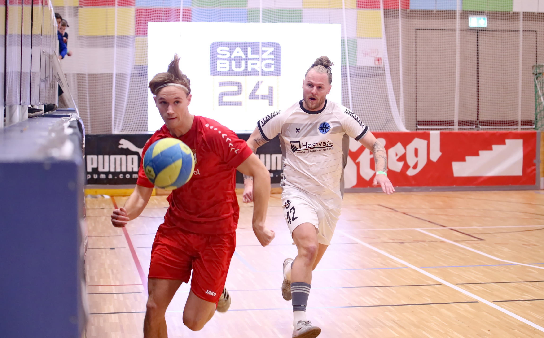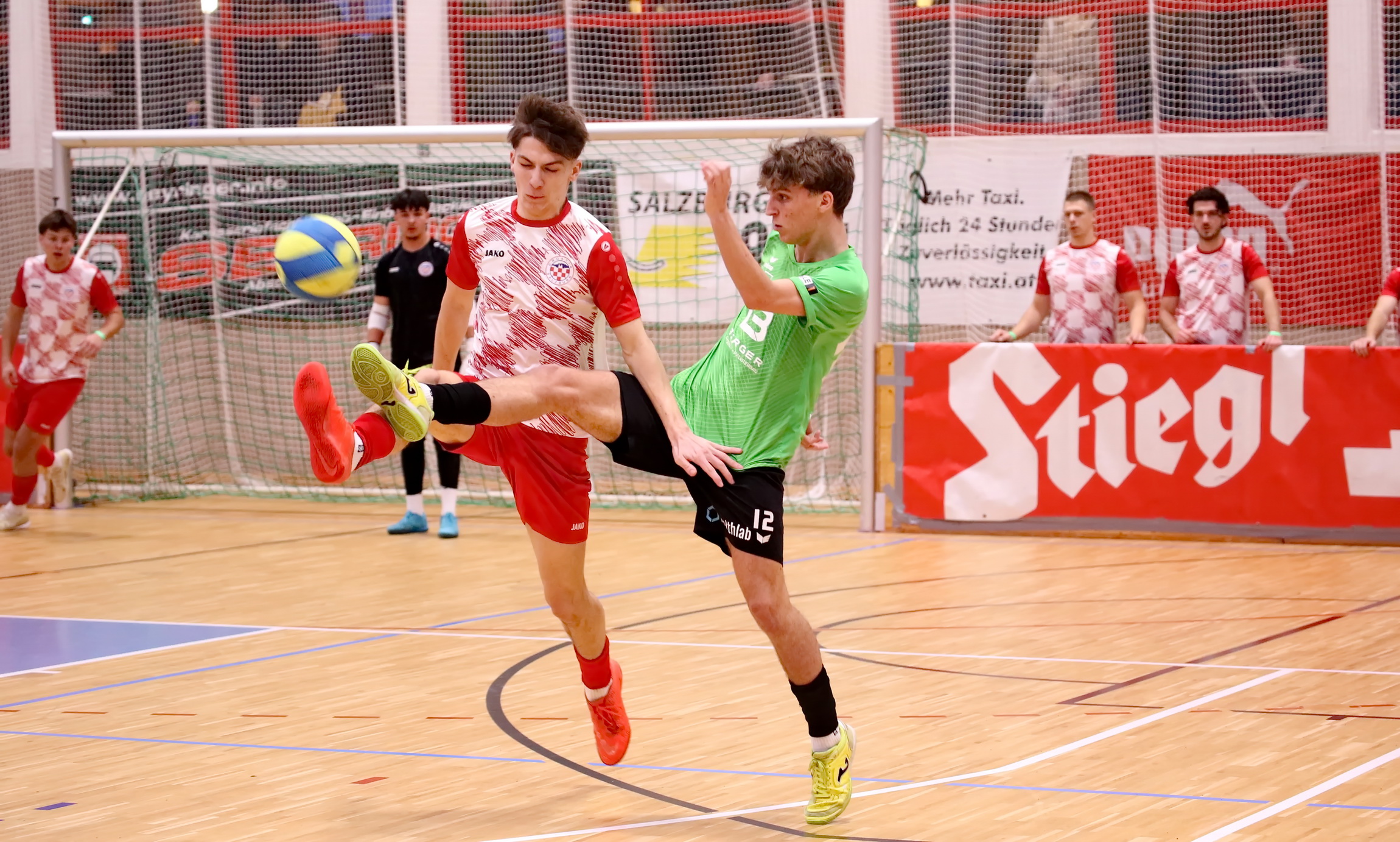 Die Sporthalle Alpenstraße bebte: Am heutigen zweiten Spieltag des 43. Salzburger Stiers (UFC Stiegl Hallencup) sorgten eine restlos ausverkaufte Kulisse und hochspannende Partien für echte Gänsehaut-Atmosphäre. Während die Favoriten teilweise Federn lassen mussten, drückten vor allem die vermeintlichen „Underdogs“ dem Turnier ihren Stempel auf.