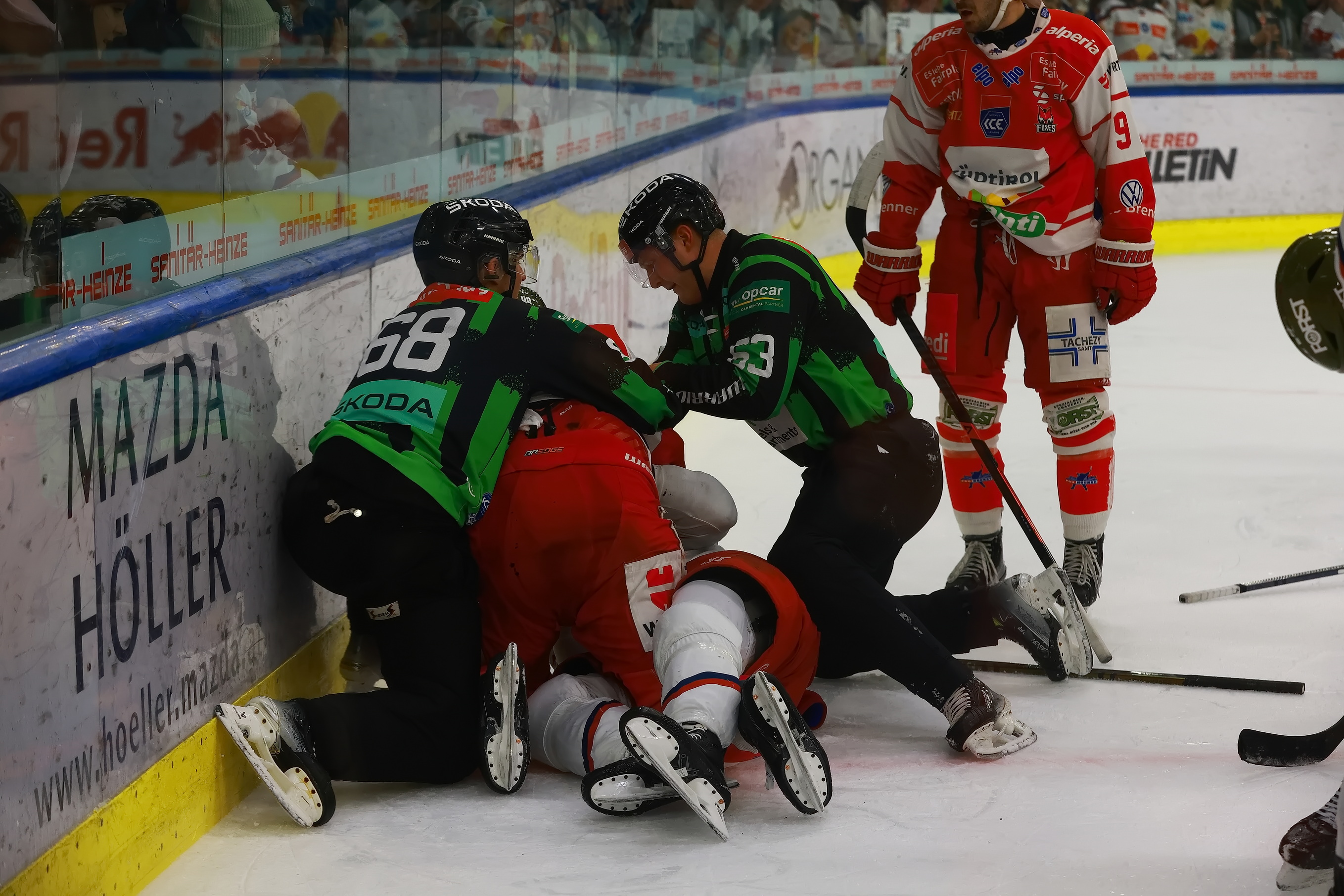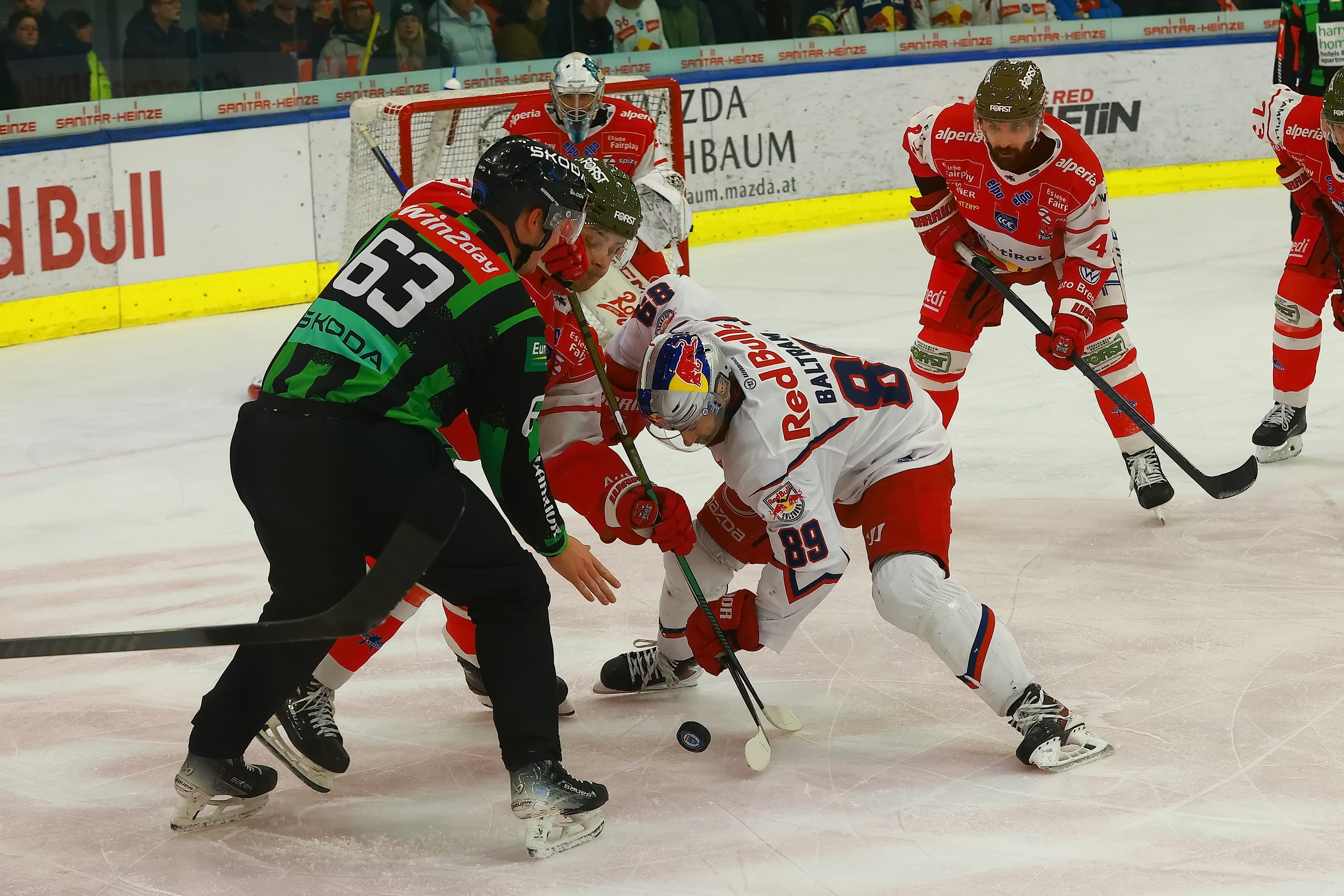 Im ersten Drittel konnte Dustin Gazley das 0:1 in der 2. Minute mit Hilfe seines Schlittschuhes erzielen. Den Ausgleich machte Thomas Raffl in der 6. Minute.