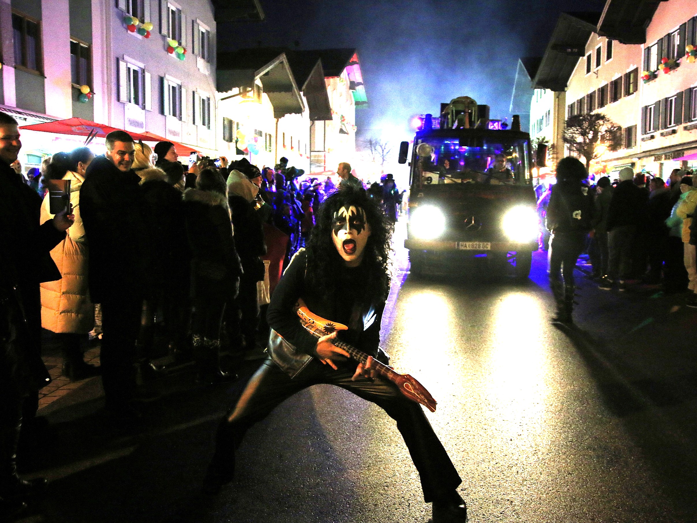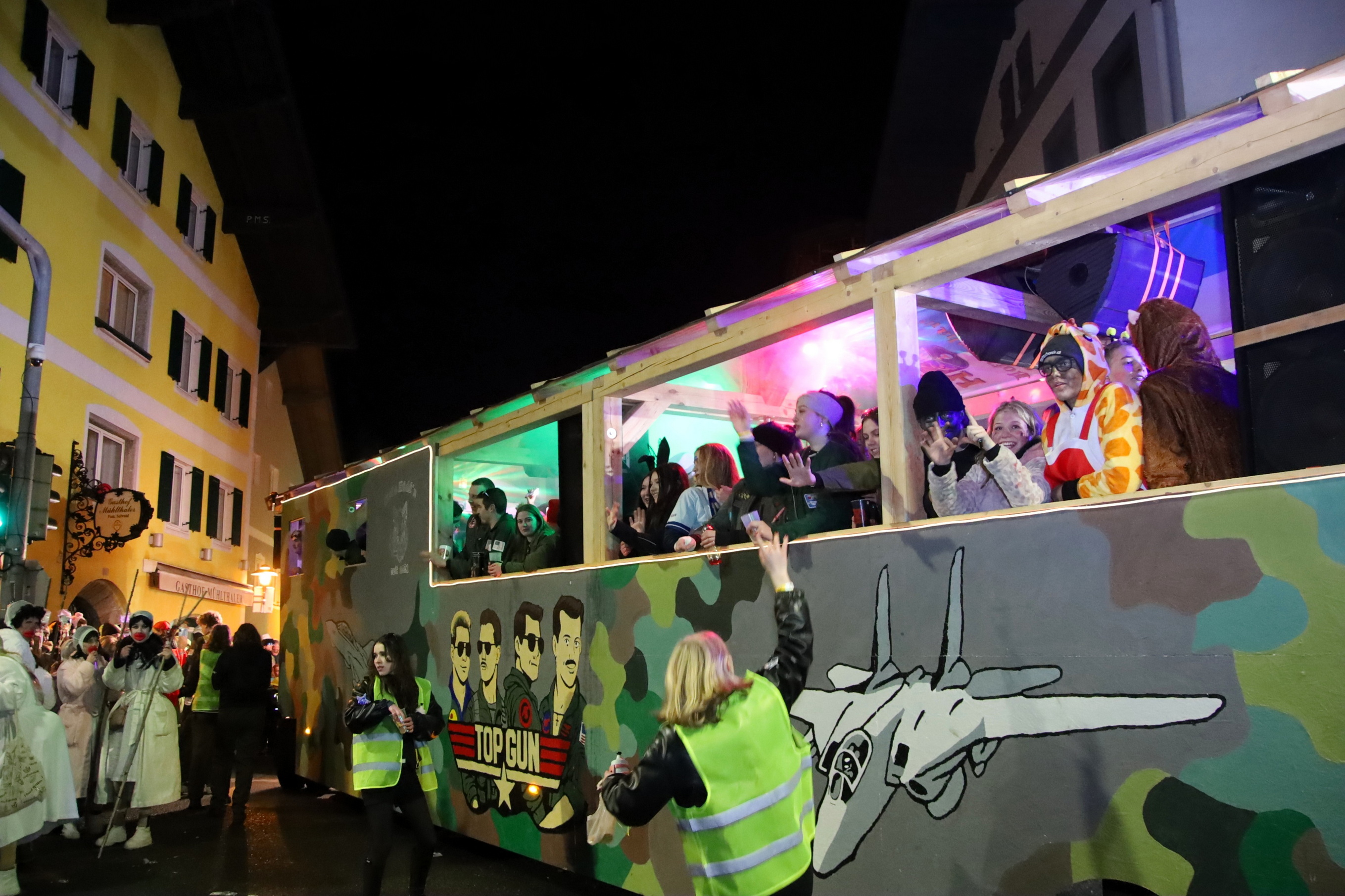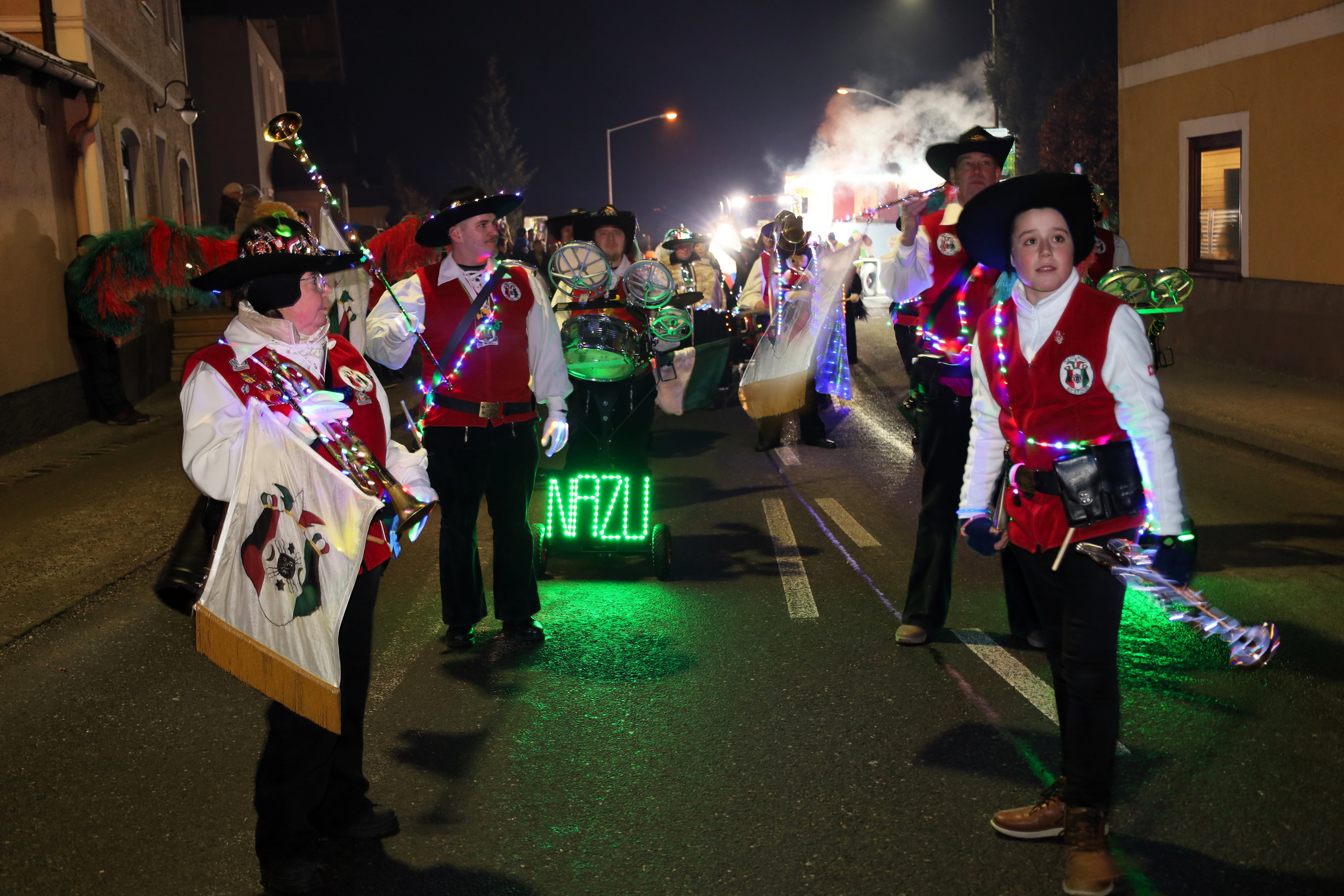 Das Besondere an diesem Umzug ist die einzigartige nächtliche Atmosphäre: Unzählige Lichter, fantasievolle Kostüme und kunstvoll gestaltete Wägen ließen die Nacht zum Tag werden und sorgten für ein beeindruckendes Gesamtbild. Bunt, frech und ausgelassen präsentierten sich die Faschingsgestalten und heizten dem Publikum entlang der Strecke kräftig ein.