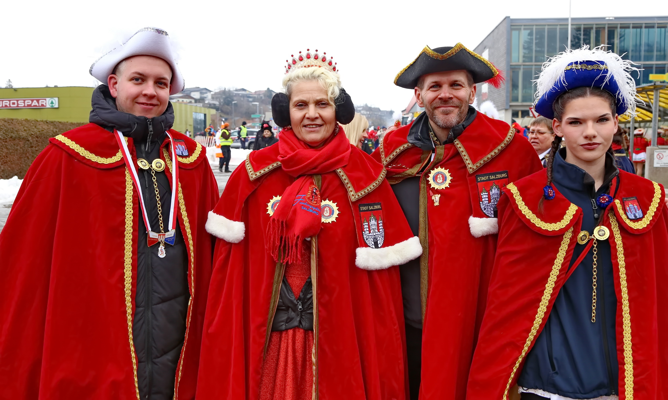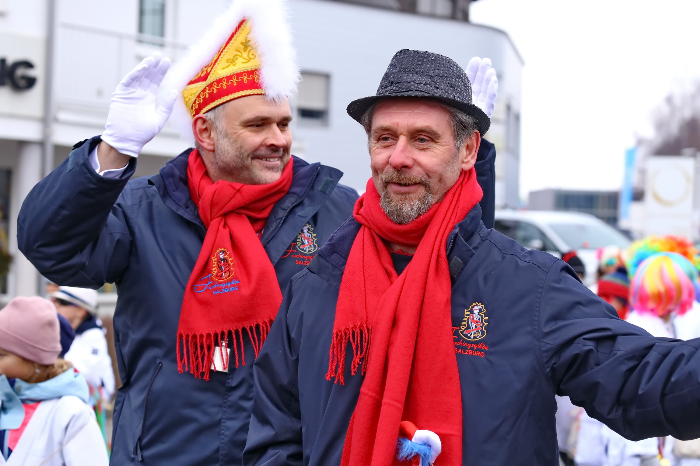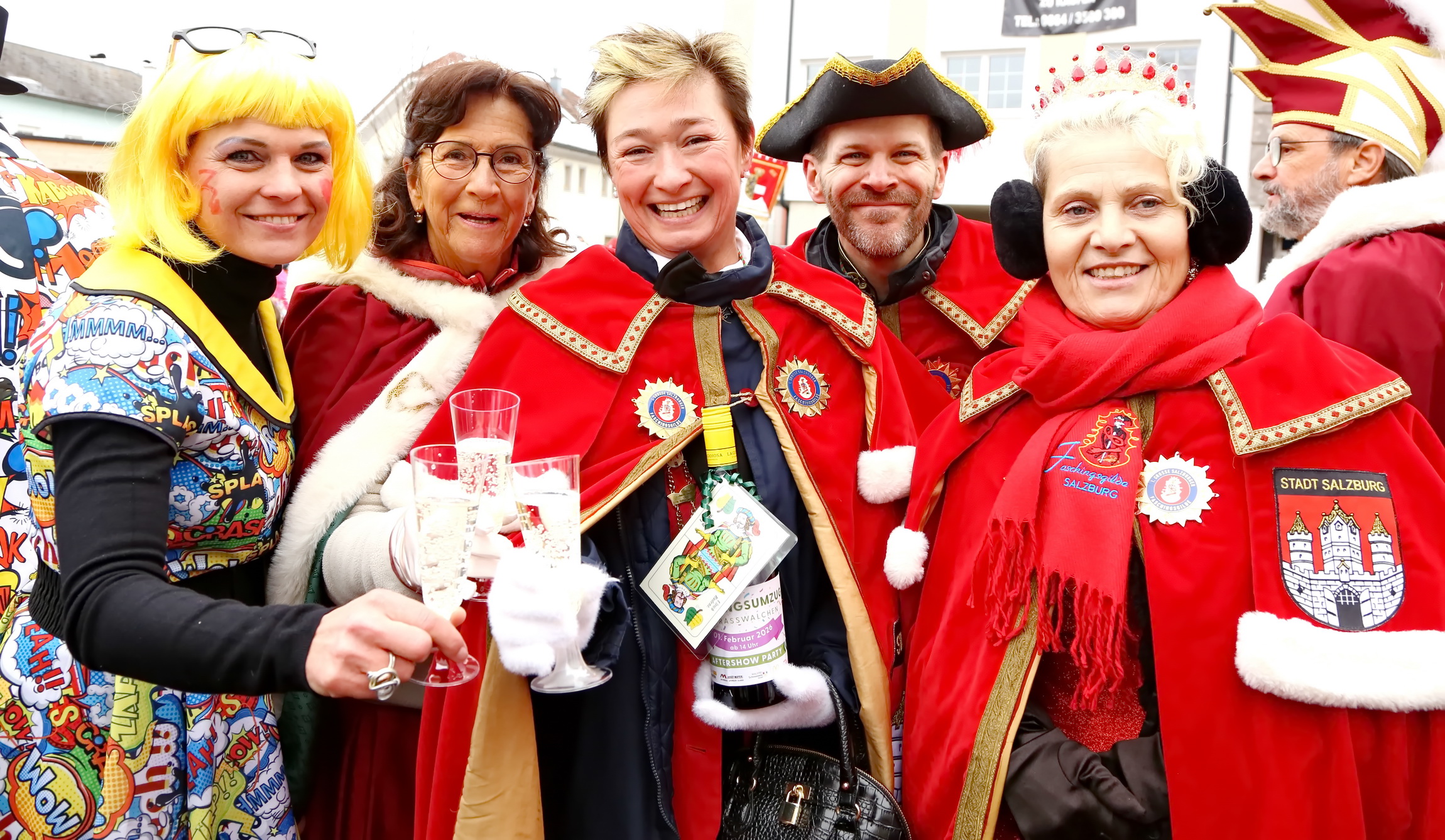 Besonderes Highlight des farbenfrohen Spektakels war der Besuch der Salzburger Faschings-Gilde. Angeführt von ihrer Obfrau und dem amtierenden Prinzenpaar, mischte sich die Delegation unter das närrische Volk. Ihr Erscheinen unterstrich die Bedeutung des Straßwalchner Umzugs als festen Fixpunkt im regionalen Brauchtumskalender.