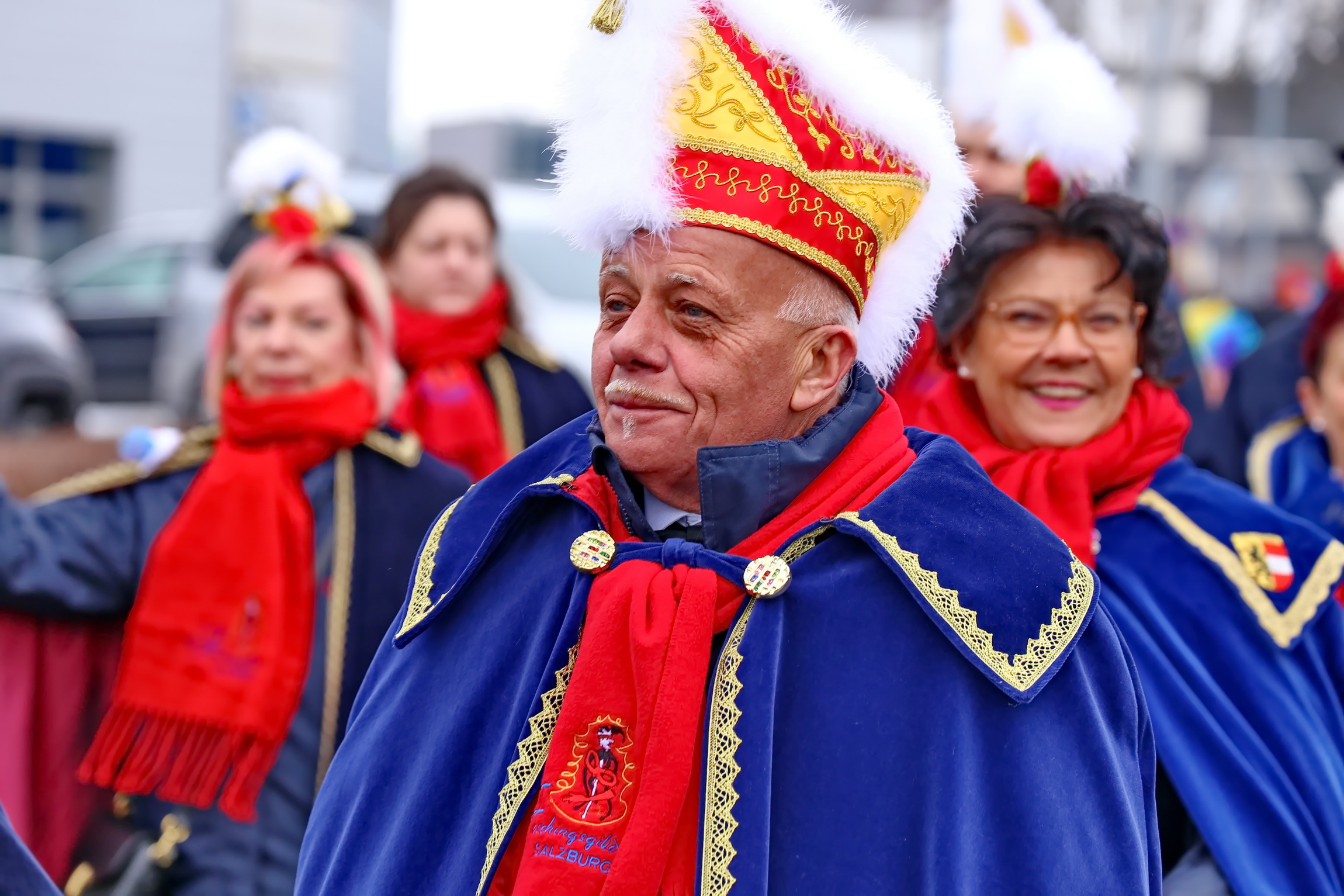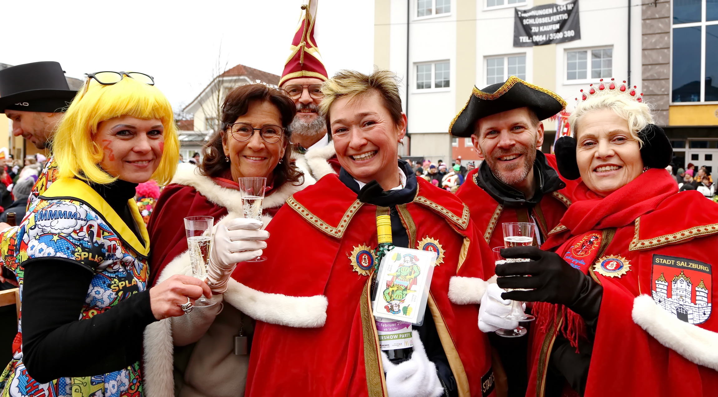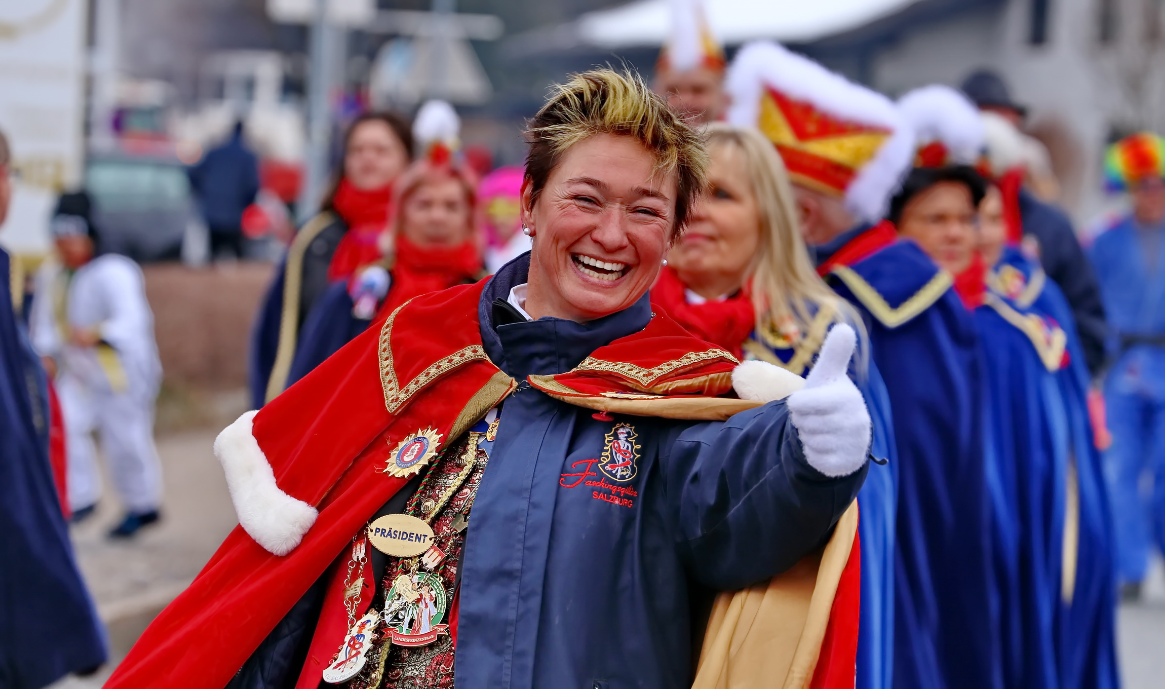 Besonderes Highlight des farbenfrohen Spektakels war der Besuch der Salzburger Faschings-Gilde. Angeführt von ihrer Obfrau und dem amtierenden Prinzenpaar, mischte sich die Delegation unter das närrische Volk. Ihr Erscheinen unterstrich die Bedeutung des Straßwalchner Umzugs als festen Fixpunkt im regionalen Brauchtumskalender.