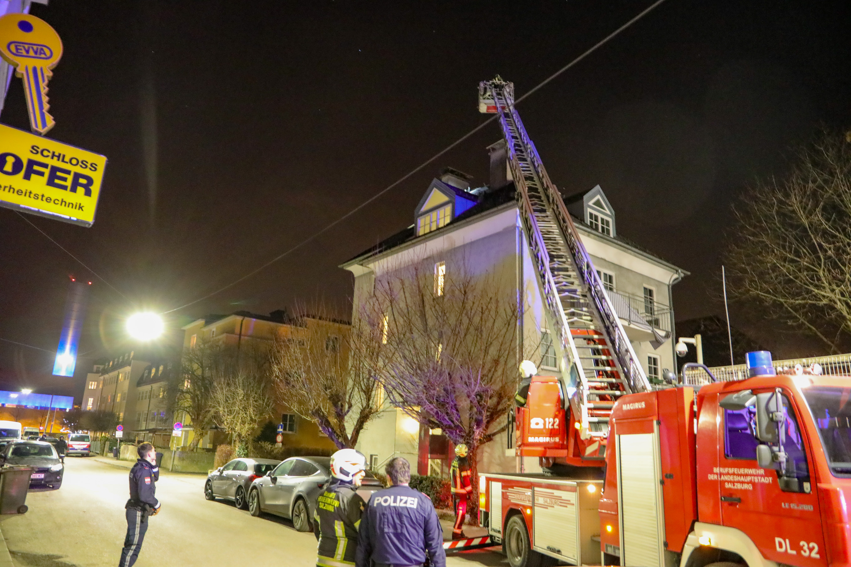 Zu einem nächtlichen Polizeieinsatz kam es am Montagabend in der Strubergasse in der Stadt Salzburg. Gegen 21:00 Uhr kreiste Polizeihubschrauber über einem Gebäude, zahlreiche Streifenwagen der Polizei säumten die Straße. Laut einem Bewohner wurde in drei Wohnungen in dem Wohnhaus eingebrochen. Die Bewohner berichten auch davon, dass ein Tatverdächtiger auf das Dach geklettert sei. Die SIG der Polizei stürmet ins Gebäude und nahmen eine Person vorläufig fest. Die nachalarmierte Berufsfeuerwehr Salzburg rückte zur Unterstützung der Polizei an. Die Berufsfeuerwehr erkundete das Dach und stellten Schäden, welche durch die Tatverdächtige Person verursacht wurden fest. Die Feuerwehr erkundete zusätzlich die Schäden mittels einer Drohne. Die Schäden wurden durch die Feuerwehr behelfsmäßich behoben.