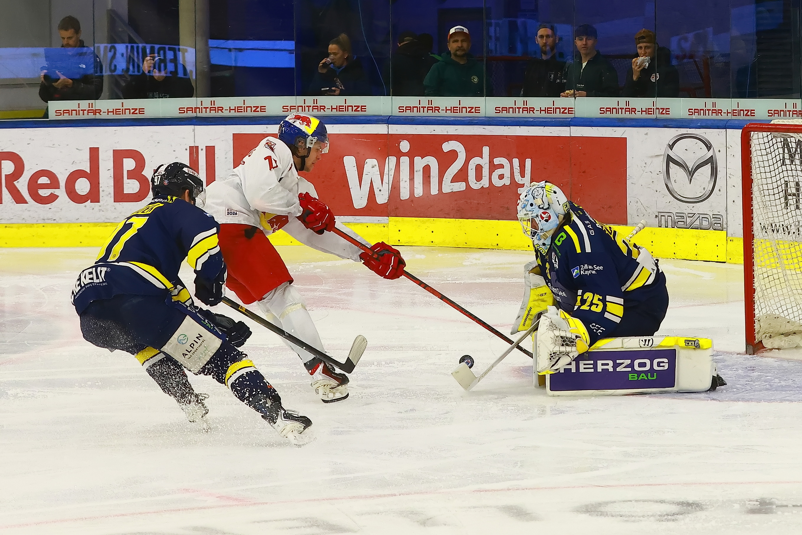 Das 1:0 erzielte der Topscorer der Salzburger Maxim Eliseev bereits nach 22 Sekunden und Paul Schuster erhöhte in der 6. Minute auf 2:0.