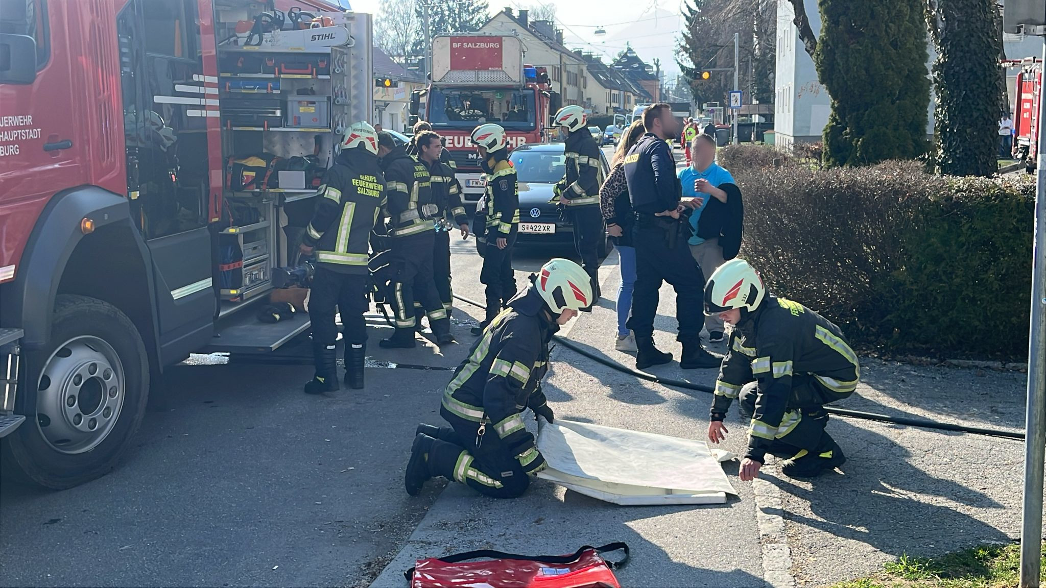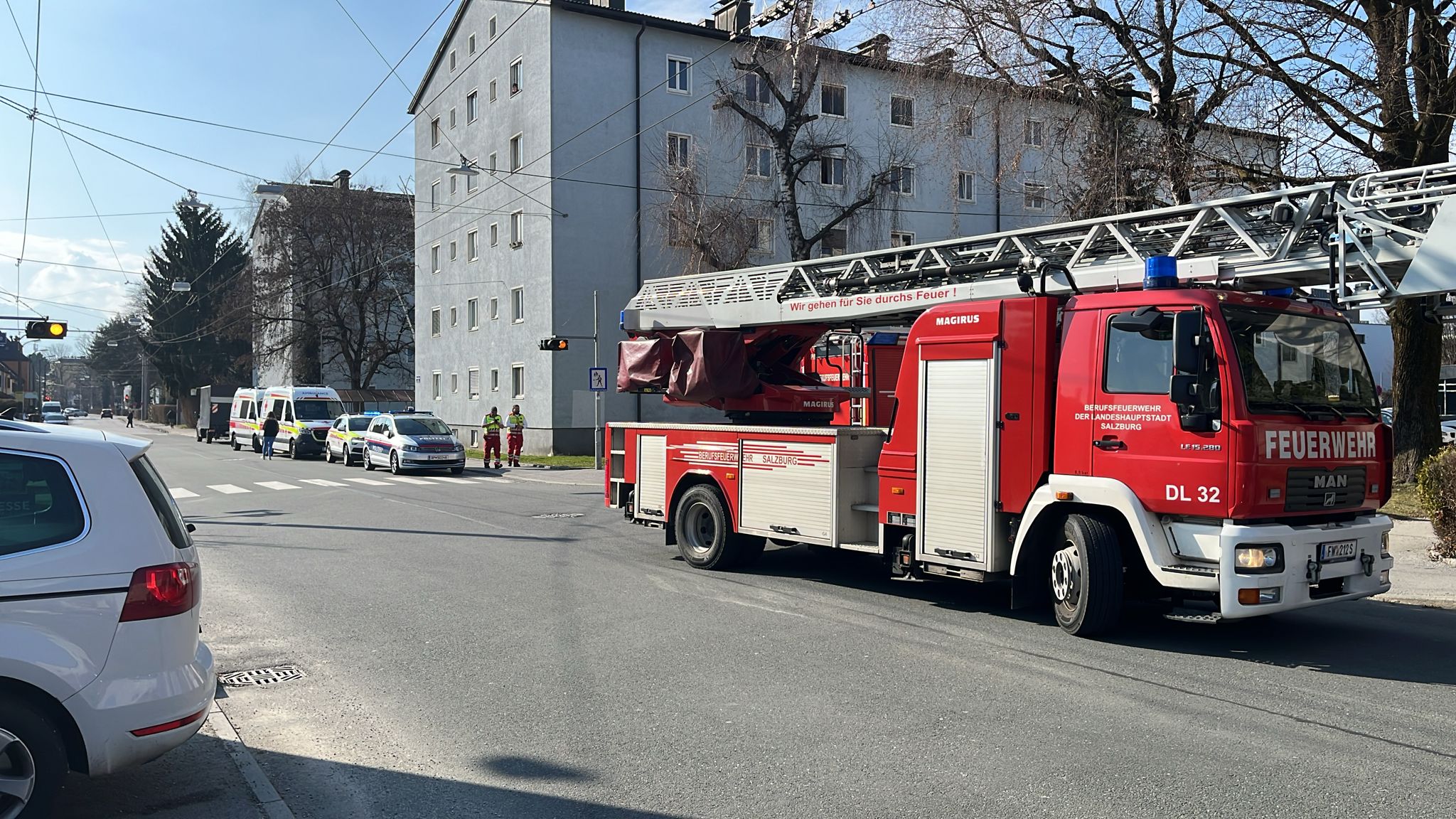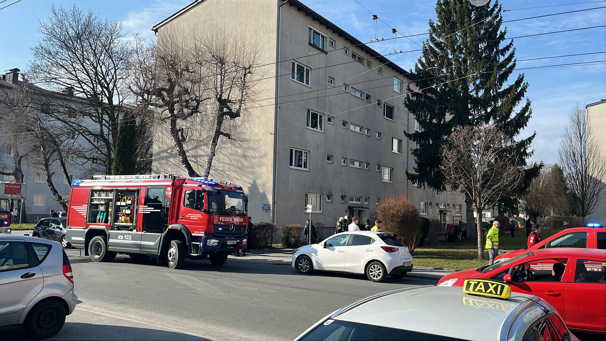 Zu einem Küchenbrand im 3. Stock wurde die Berufsfeuerwehr Salzburg in die Bessarabier-Straße alarmiert. Die Berufsfeuerwehr befreite die Bewohner aus der Brandwohnung. Zum Glück waren sie in einem anderen Zimmer und wurden dem giftigen Rauch nicht stark ausgesetzt. Den Brand hatten die Feuerwehrmänner schnell unter Kontrolle. Das Rote KReuz Salzburg meldet keine verletzten. Eine Person unterschrieb einen Revers. Mehr ist noch nicht bekannt.