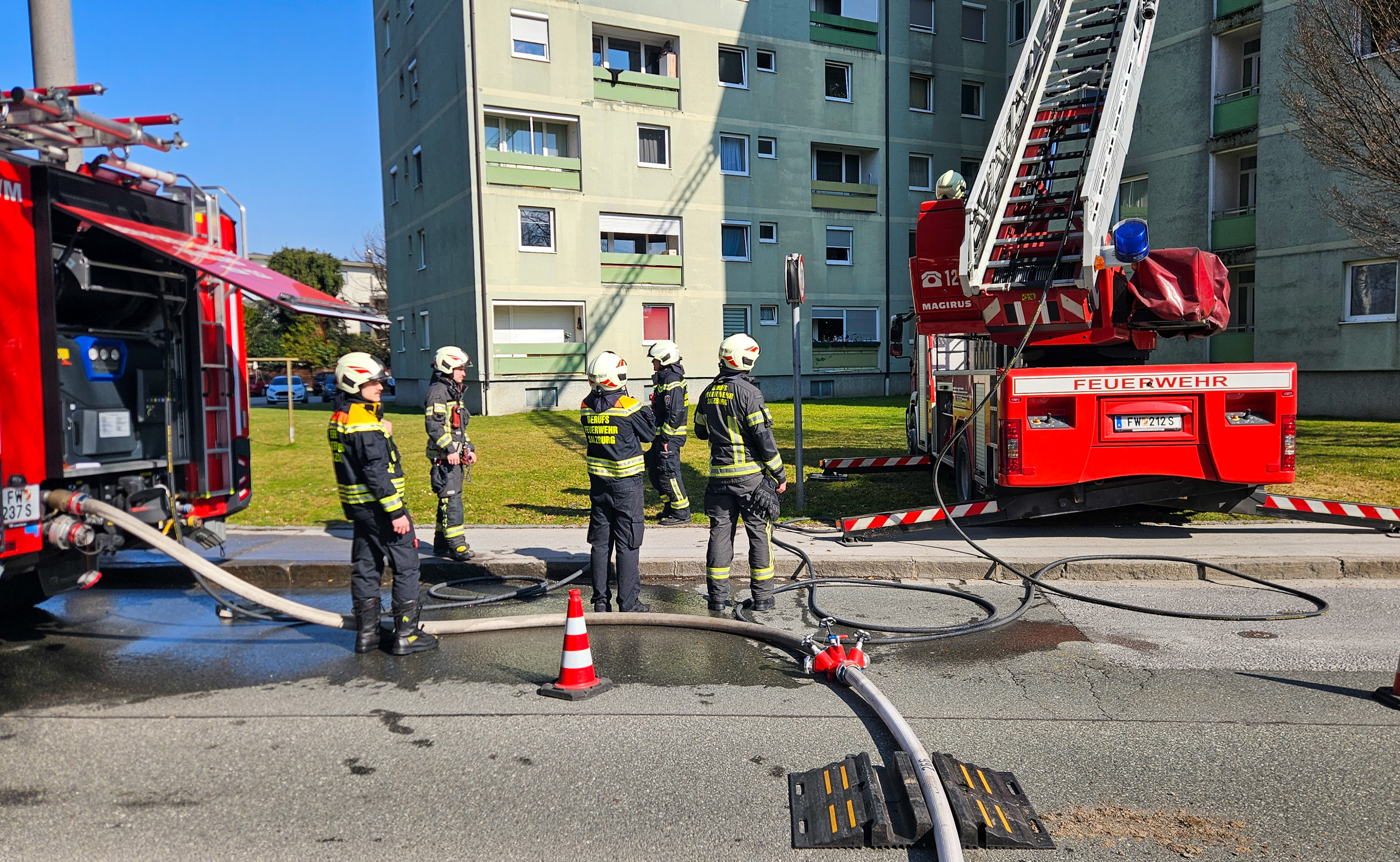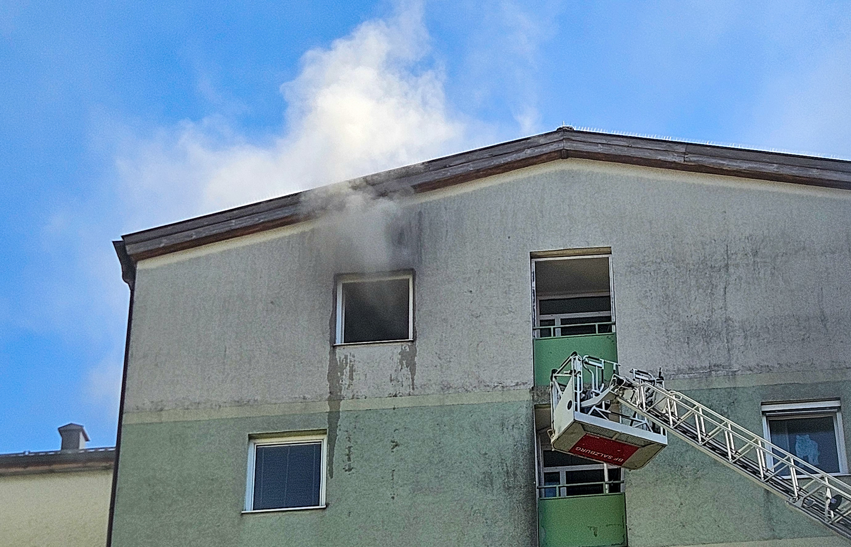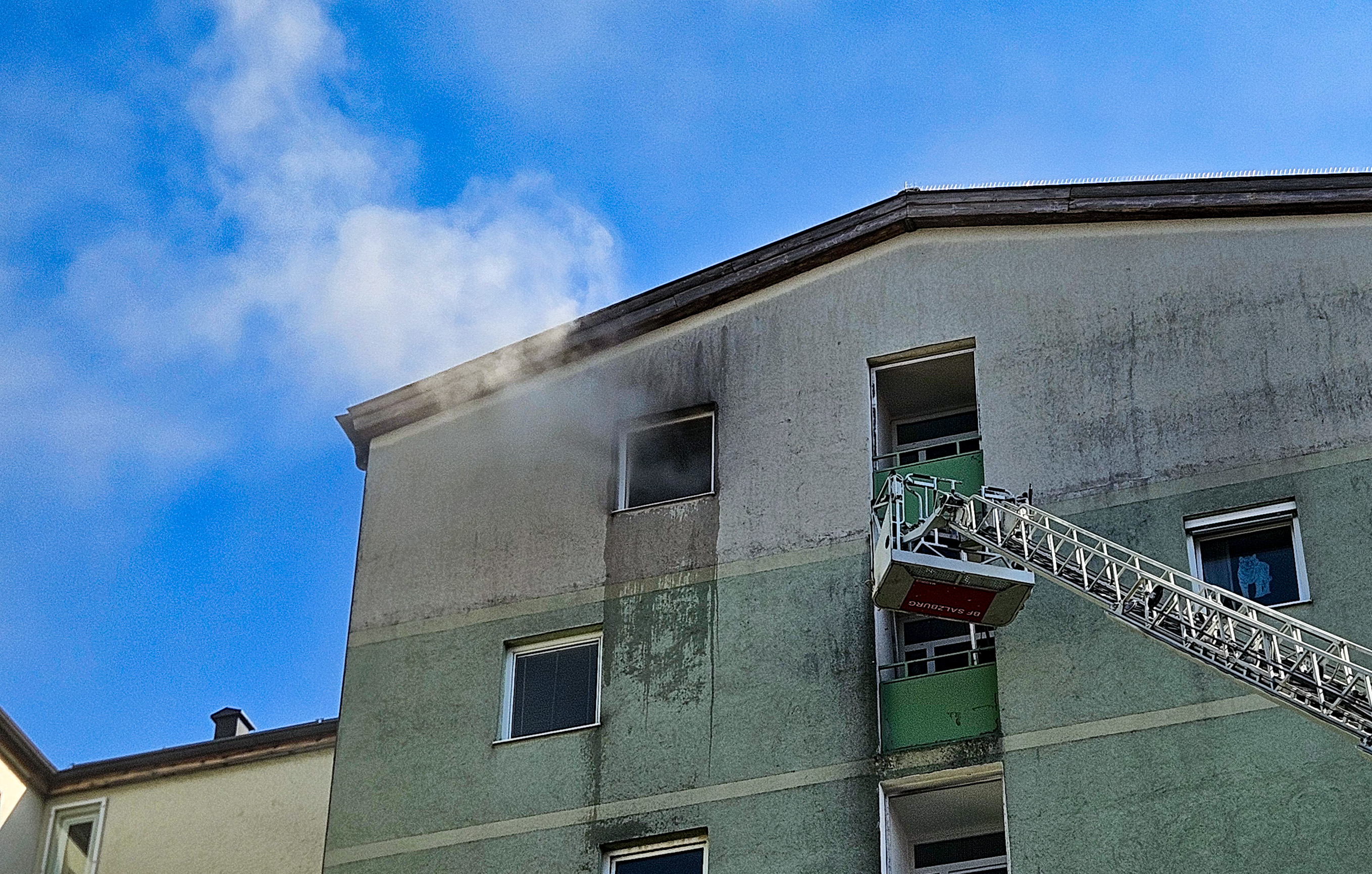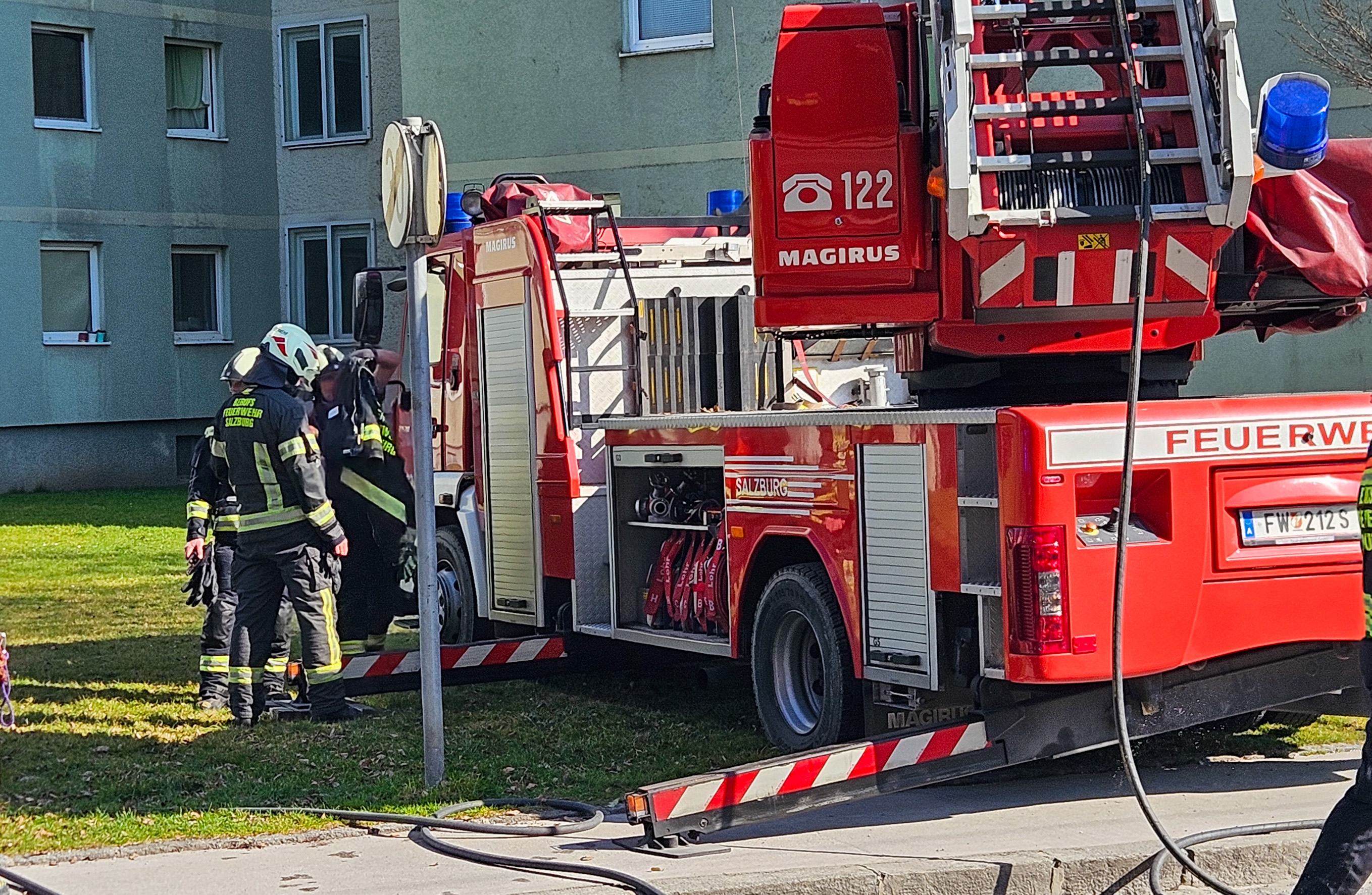 Zu einem Zimmerbrand kam es am frühen Dienstagnachmittag in der Bessarabier-Straße. Die Berufsfeuerwehr Salzburg zusammen lit dem Löschzug Liefering der FF Salzburg Stadt barg 2 Personen aus der Brandwohnung und löschte anschließend den Brand. Zwei Personen werden zur Zeit vom Roten Kreuz Salzburg reanimiert.