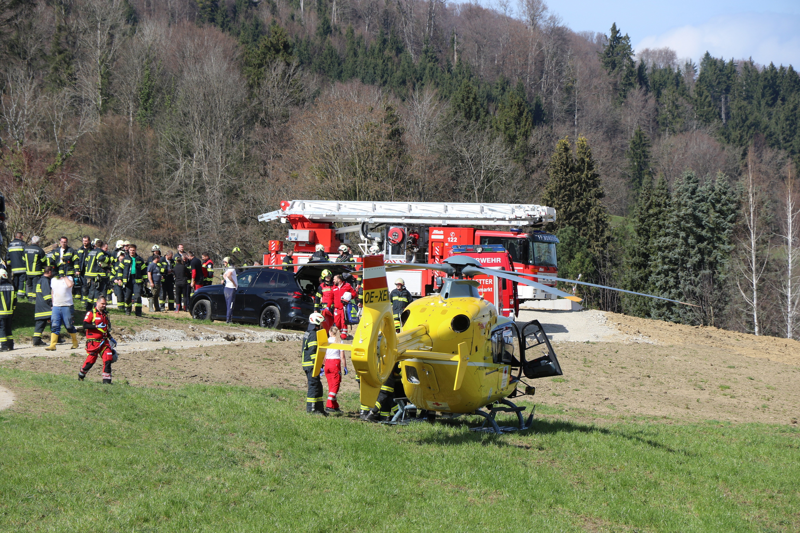Mehrere Feuerwehren der Region wurden umgehend alarmiert und rückten mit einem Großaufgebot zur Einsatzstelle aus. Die Einsatzkräfte übernahmen die Rettung der verunfallten Person sowie die Unterstützung des Rettungsdienstes.