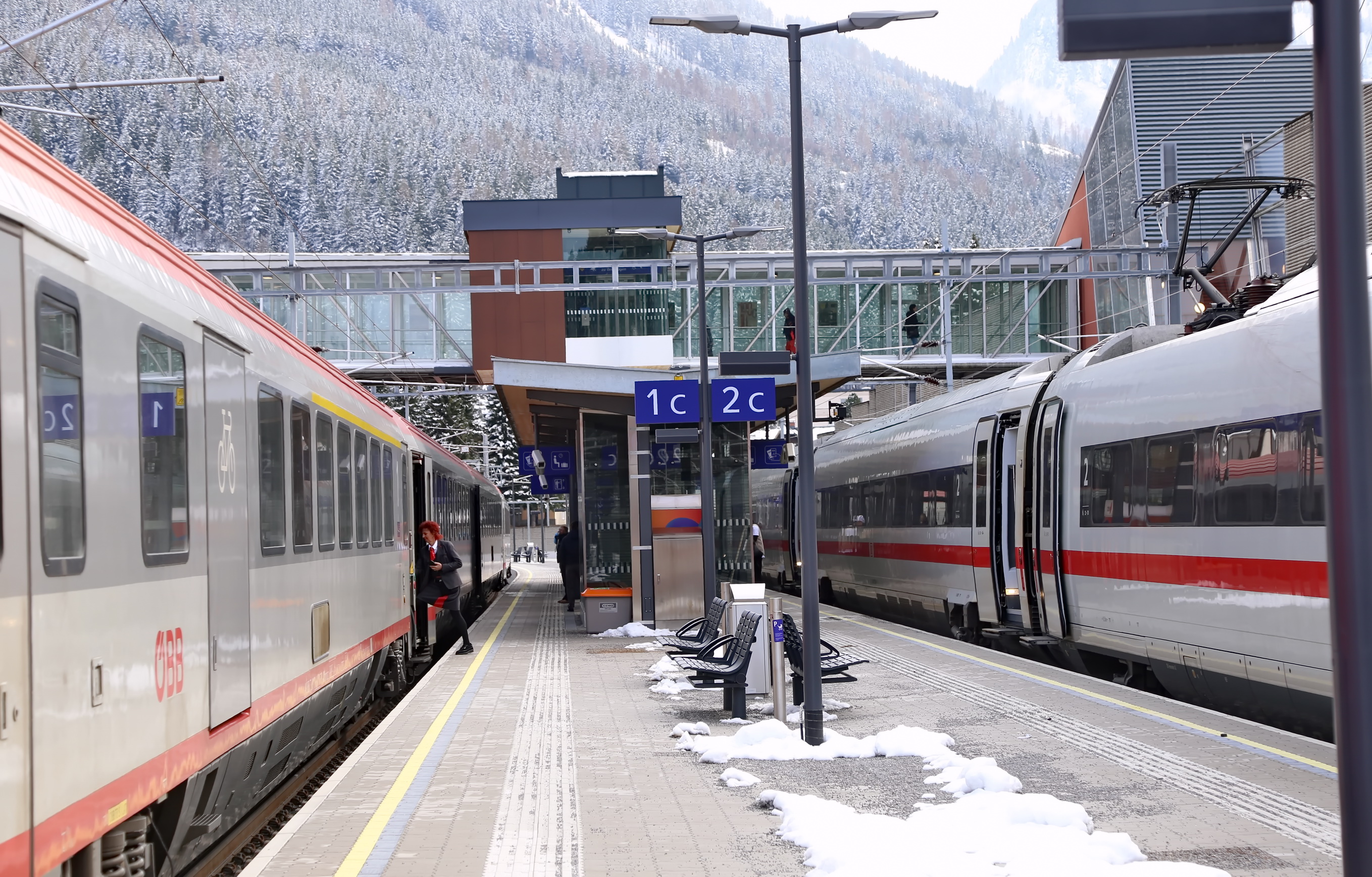 Das Herzstück des neuen Bahnhofs ist der modernisierte Inselbahnsteig (Gleis 2/3). Mit einer Länge von 420 Metern ist er speziell für den hochrangigen Fernverkehr (Railjet und EuroCity) konzipiert. Dank der Anhebung auf das Standardniveau von 55 cm sowie zwei neuer Aufzugsanlagen ist ein stufenloser Einstieg für alle Reisenden sichergestellt. Moderne Wartekojen und ein taktiles Leitsystem ergänzen das Komfort-Angebot.