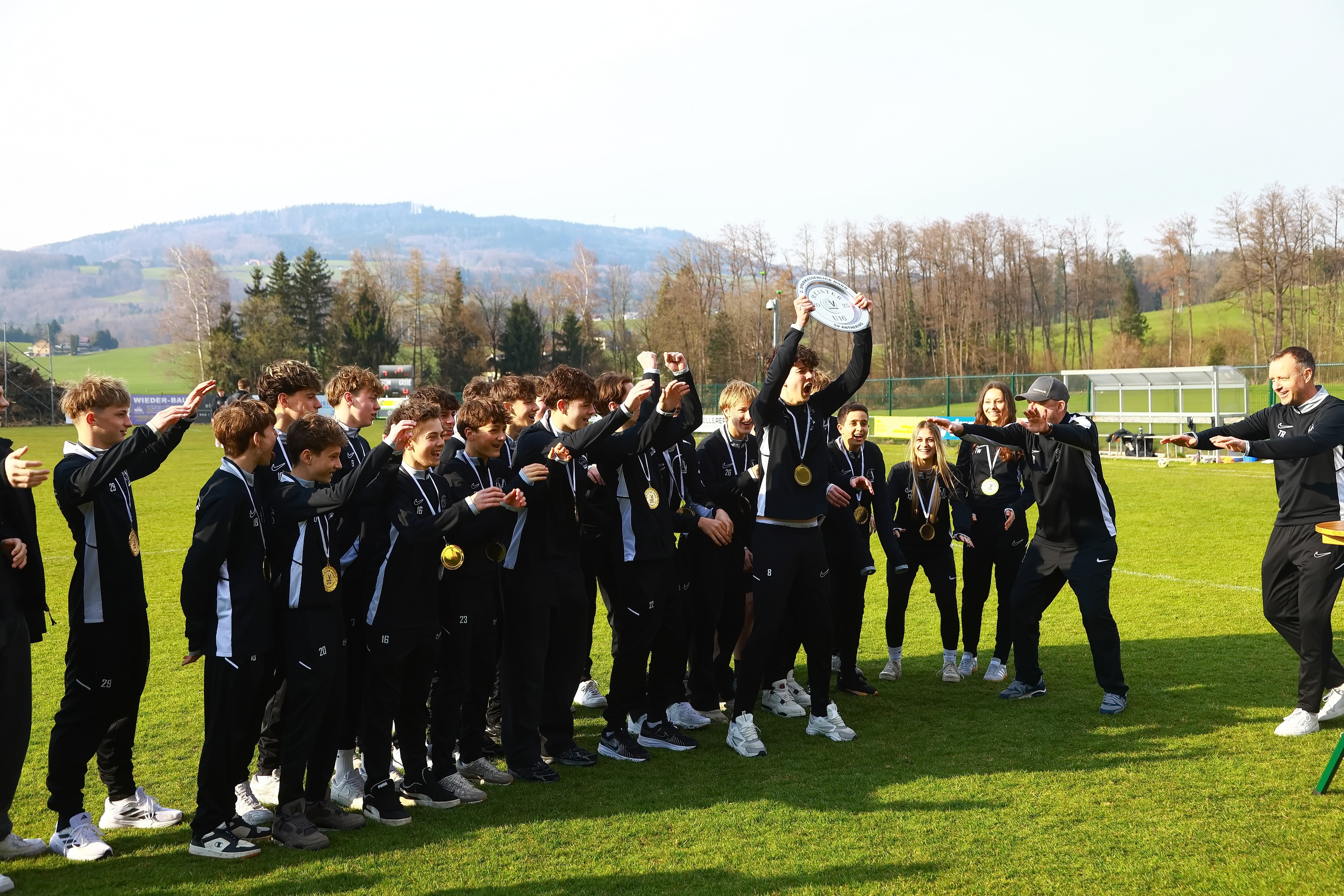 Die erste Halbzeit ging Torlos vorüber und in der Halbzeit wurde die U16 vom SV Anthering als Meister in der Sparkassenliga gefeiert.