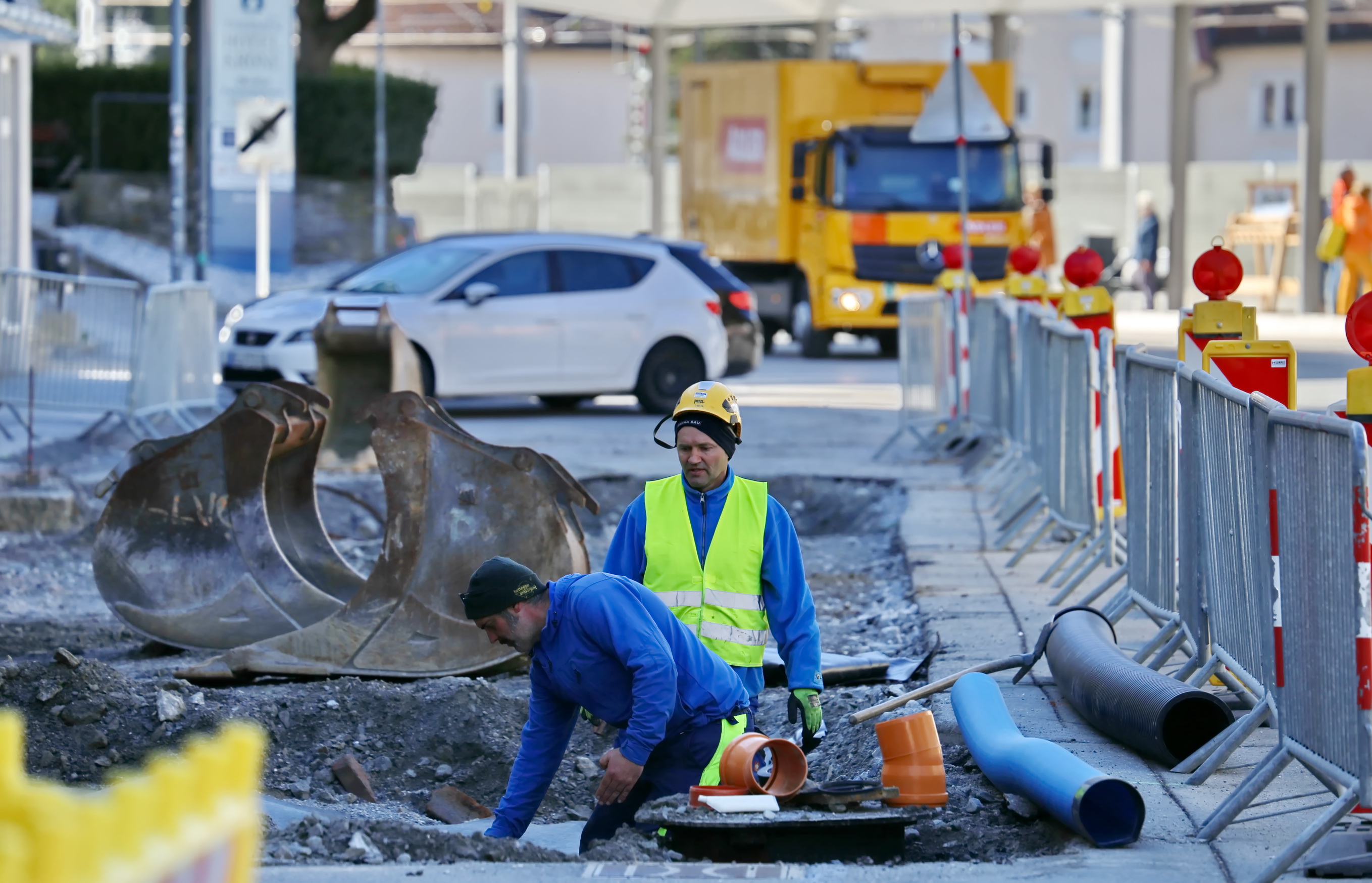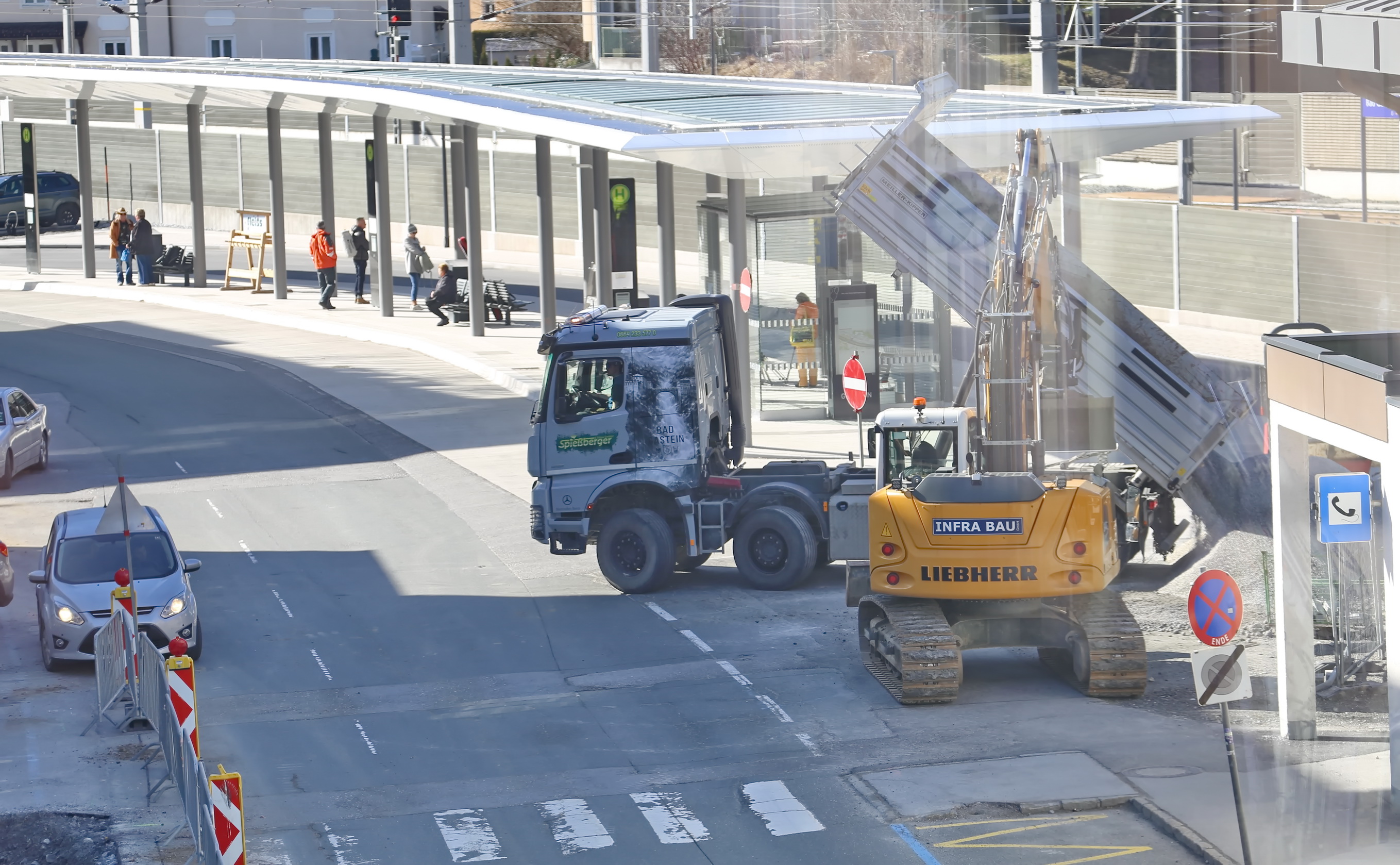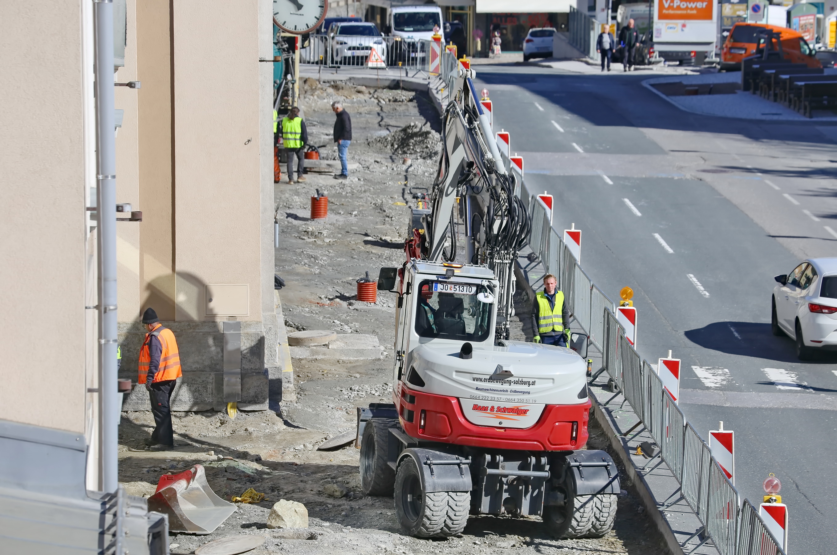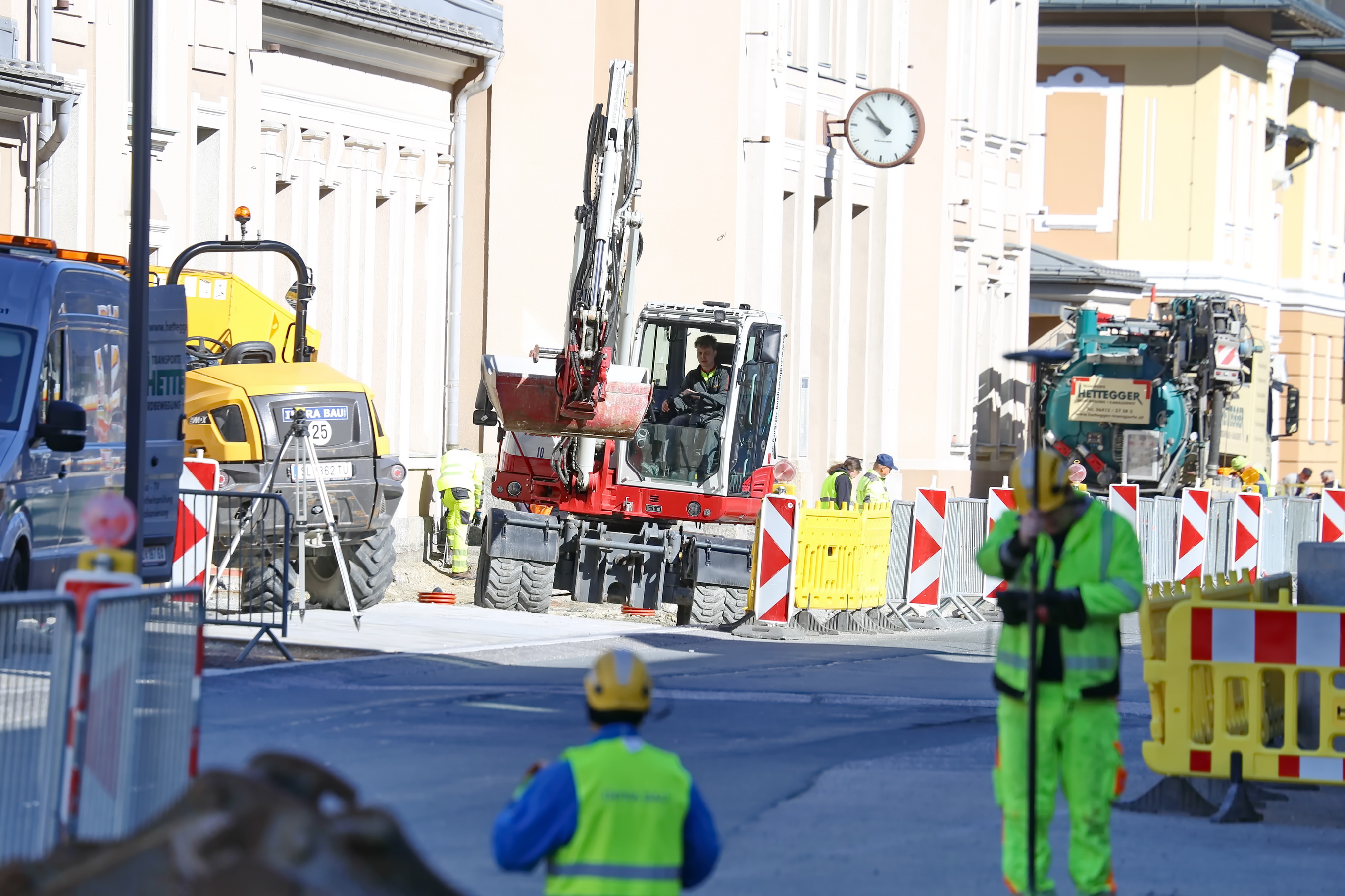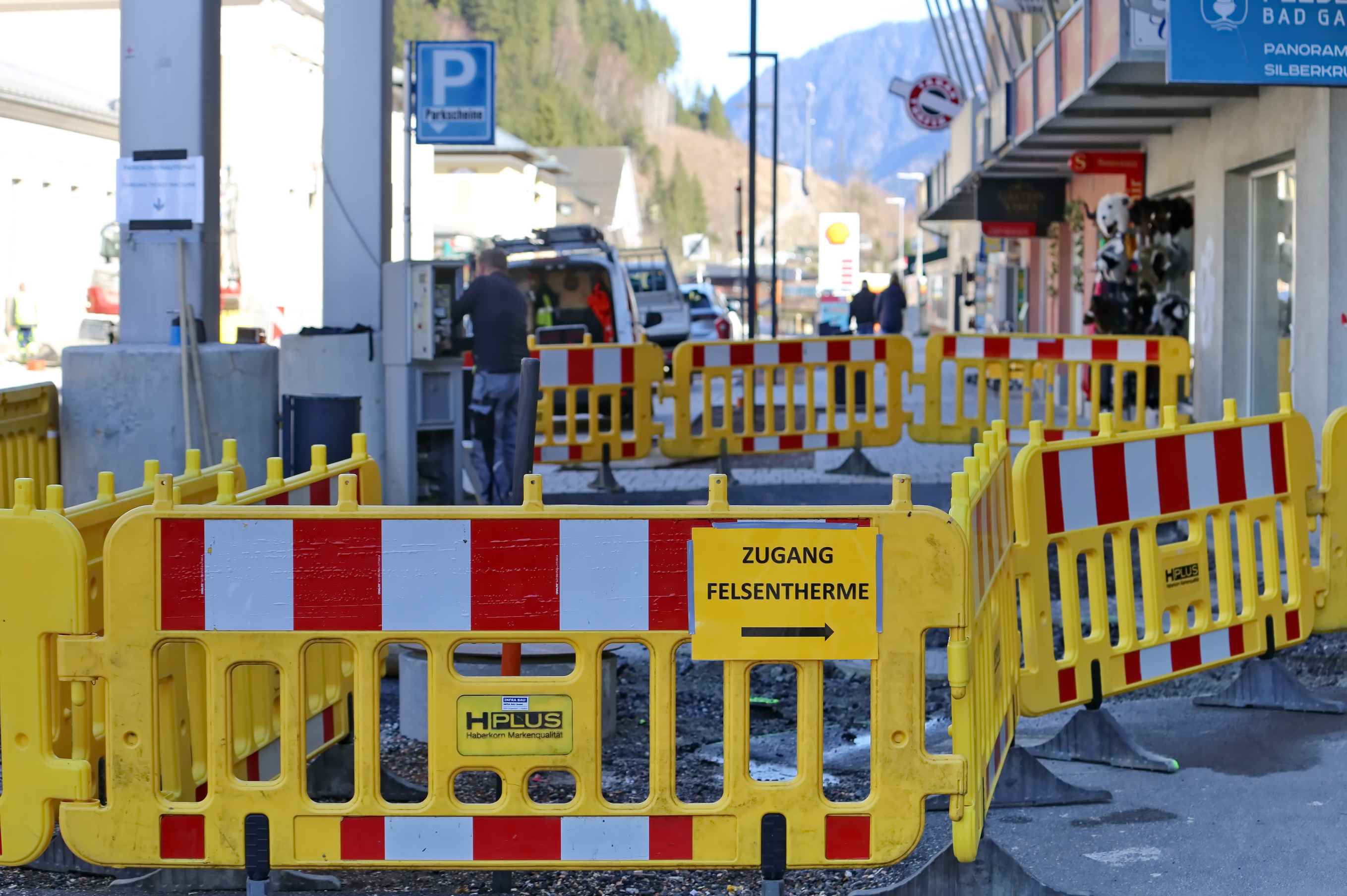 Gegenüber dem Bahnhof, im Umfeld der Felsentherme, werden Arbeiten an den Versorgungsleitungen sowie bauliche Anpassungen im Bereich der Fußgängerzonen-Anbindung durchgeführt. Zudem finden im Bereich der Parkflächen Instandhaltungsmaßnahmen statt, um die Stellplatzkapazitäten und den Zugang zur Therme für Gäste und Einheimische zu optimieren.
