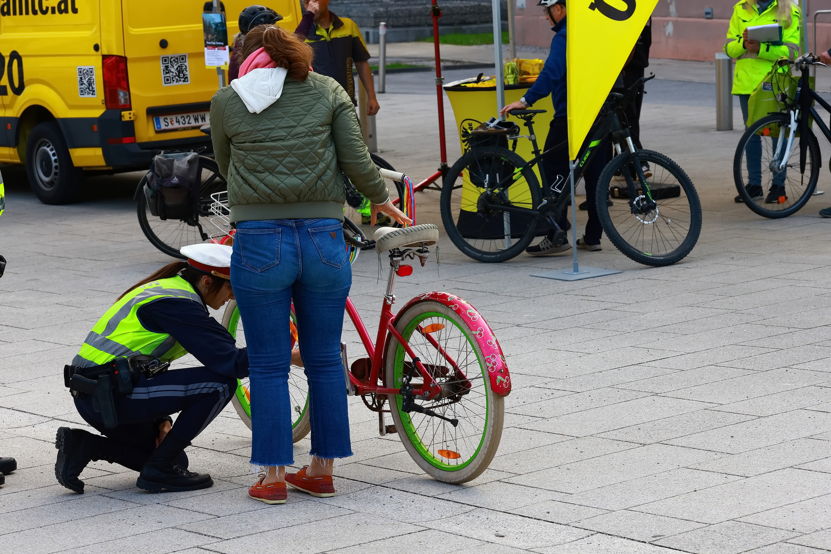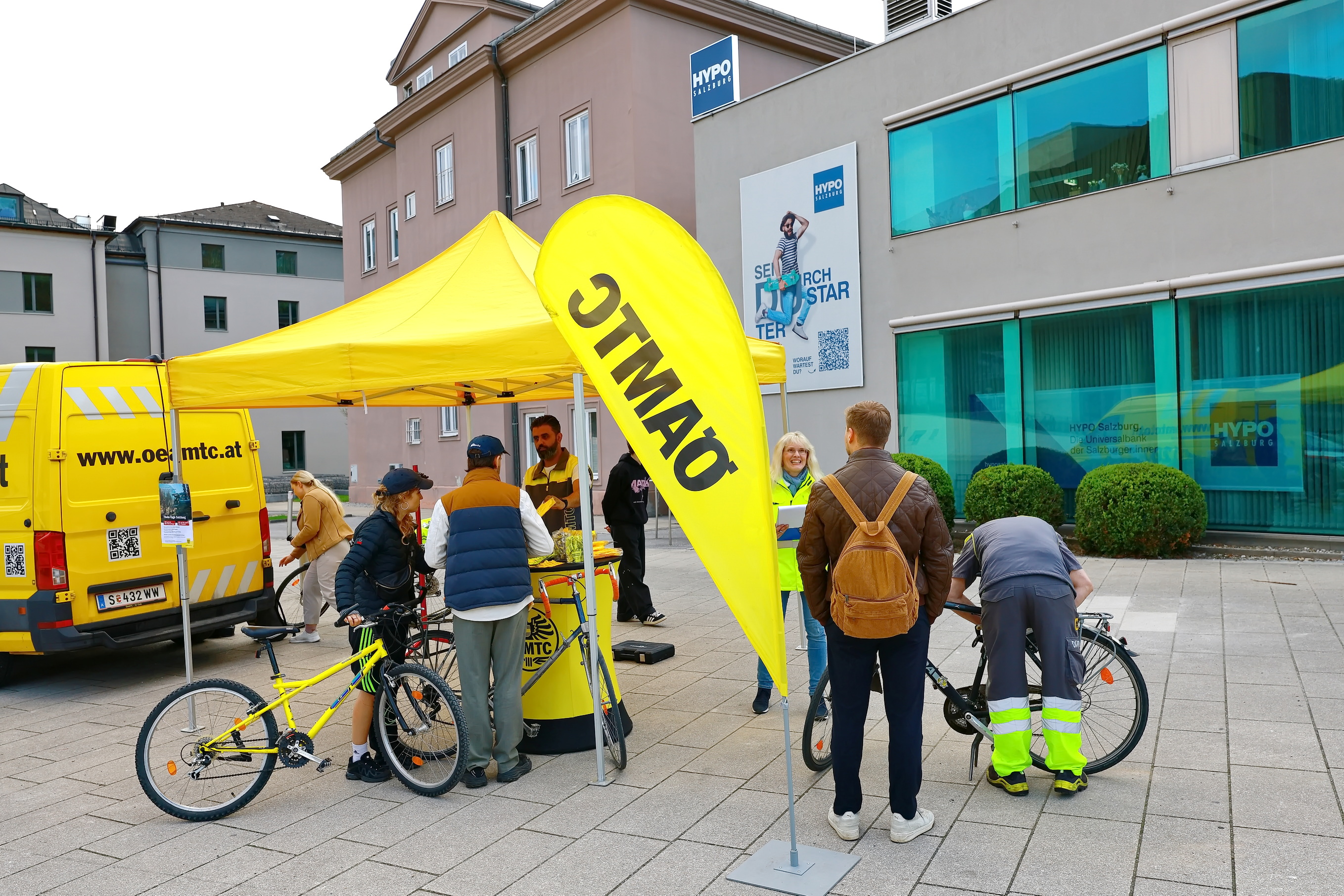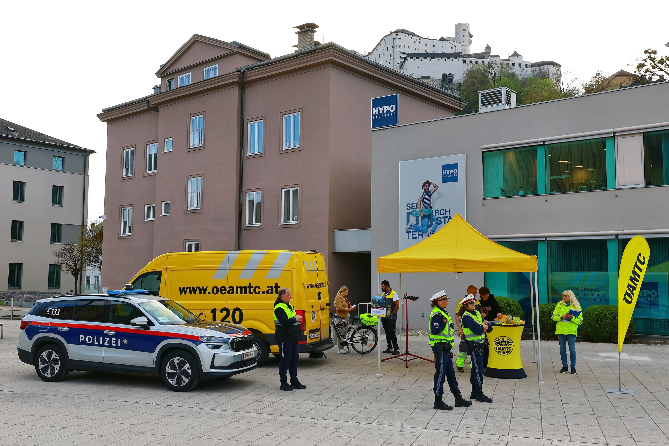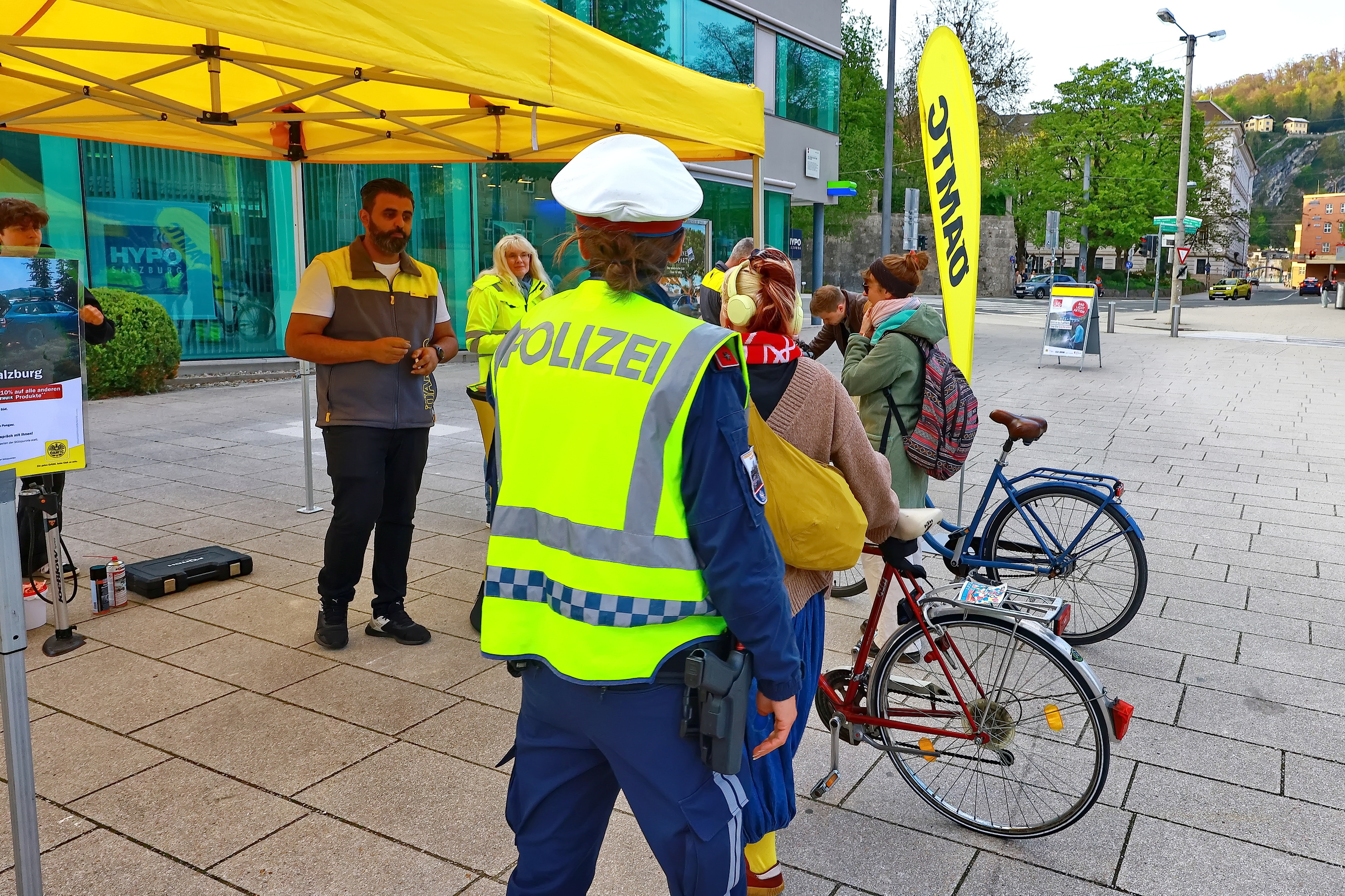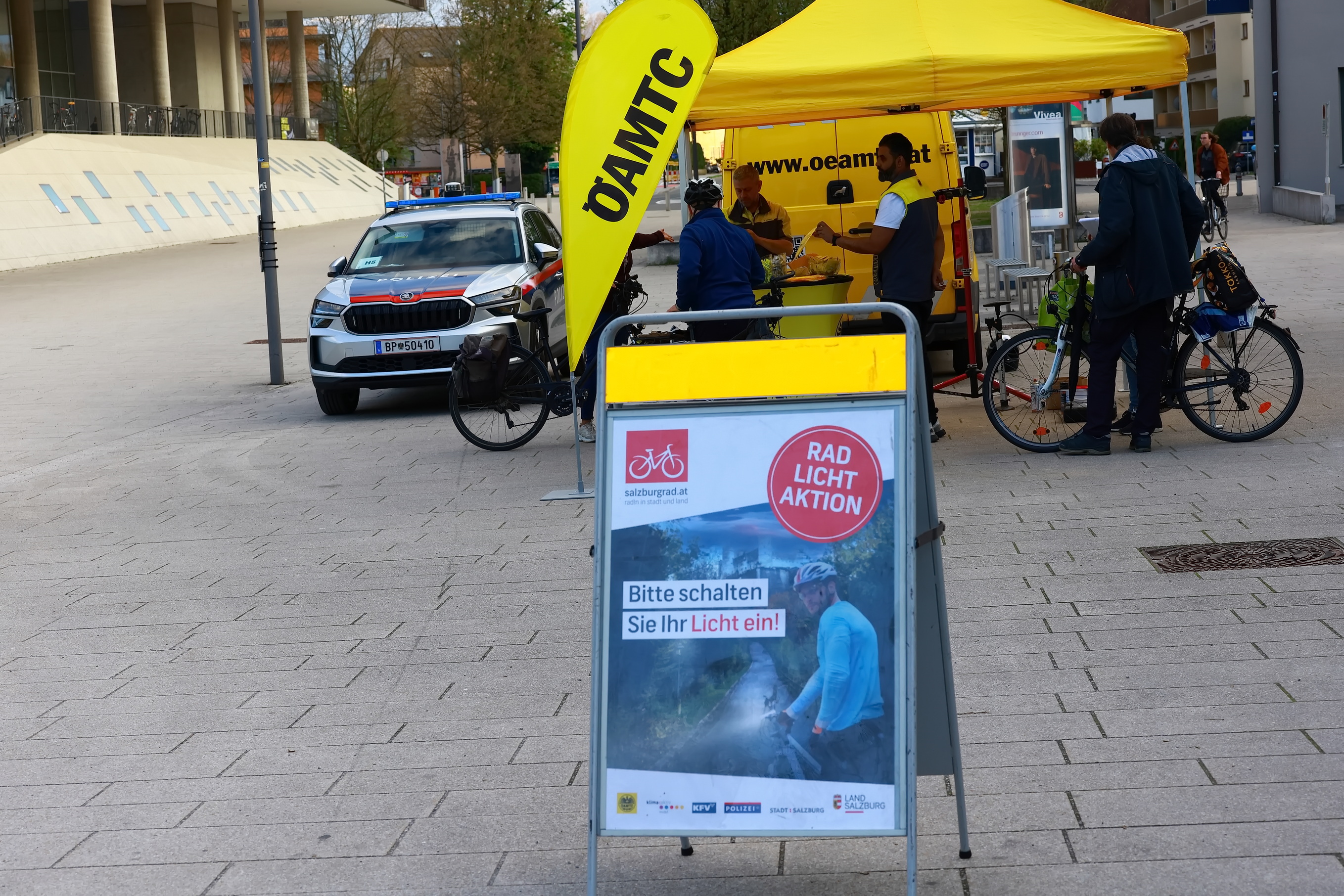 Heute fand der letzte Tag der Fahrradaktion vom ÖAMTC und der Polizei statt. Nach dem Franz-Josef-Kai und der Sinnhubstraße wurde gestern noch am Müllner Steg und heute in der Josef-Preis-Alle beim UNI-Park Nonntal die Aktion durchgeführt. Am häufigsten fehlten die Katzenaugen bei den Fahrrädern, gefolgt von zu wenig Luft, schlechten Bremsen, welche vor Ort ebenfalls repariert wurden und natürlich die Beleuchtung der Fahrräder.
