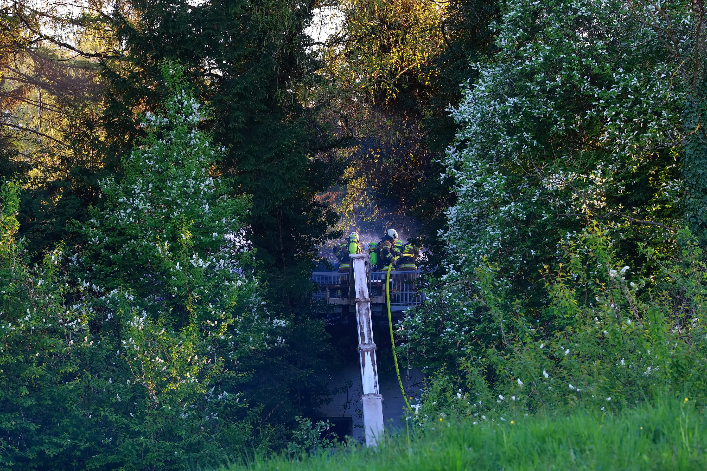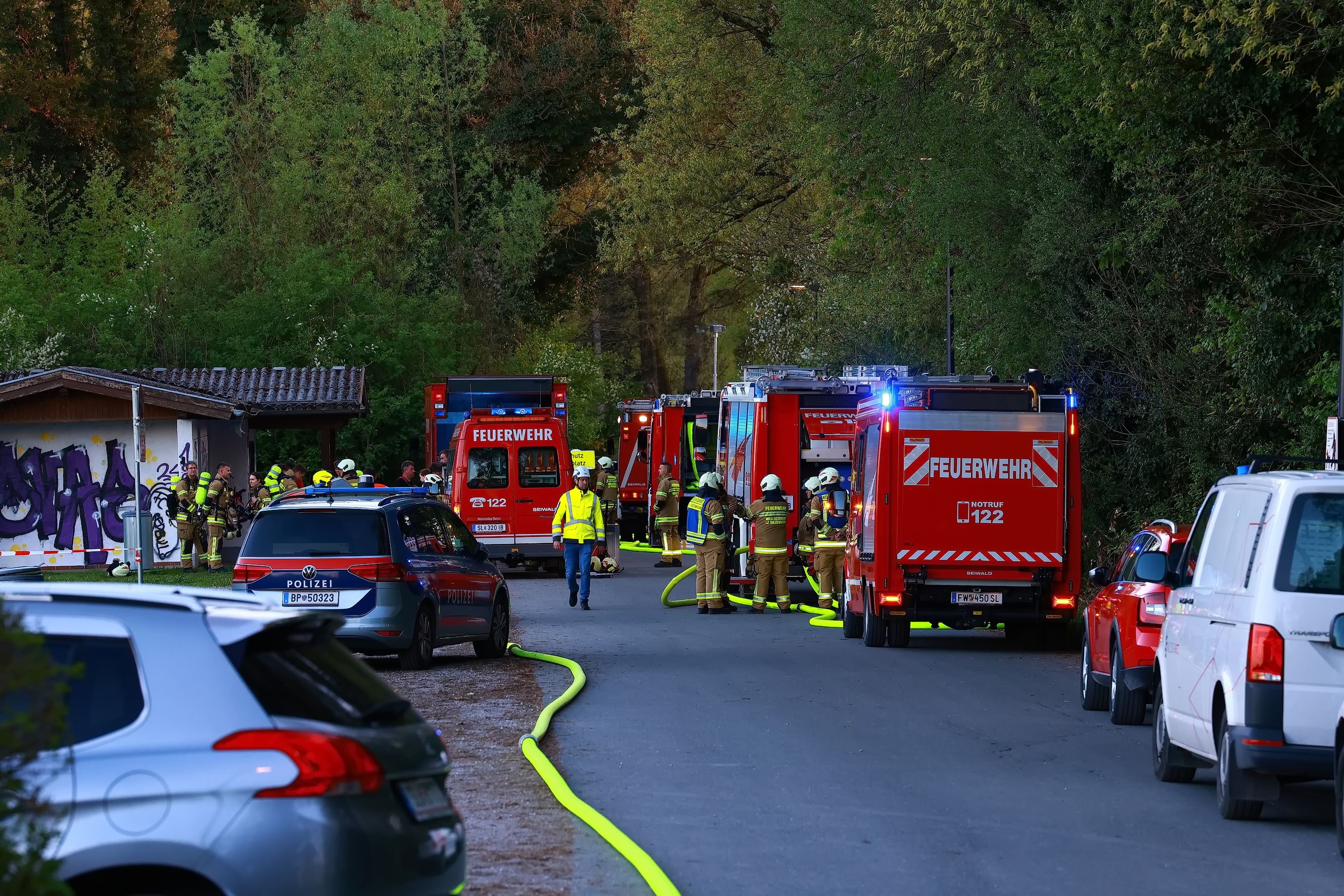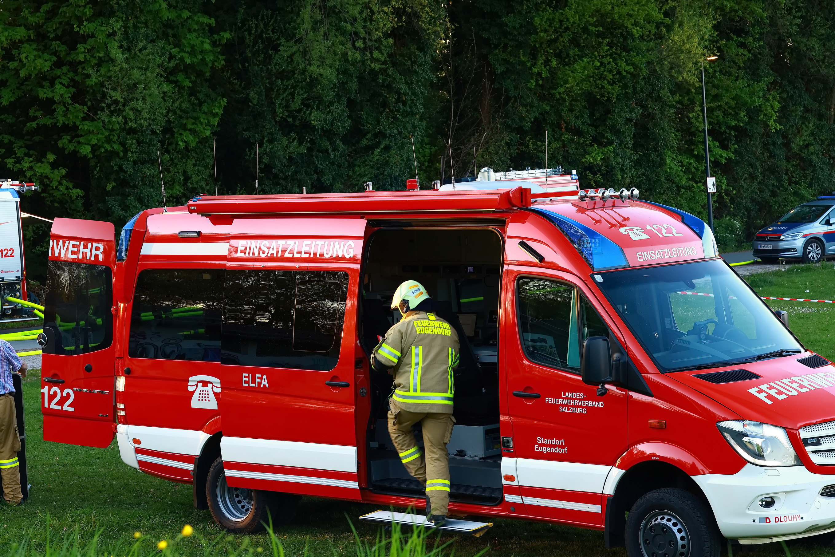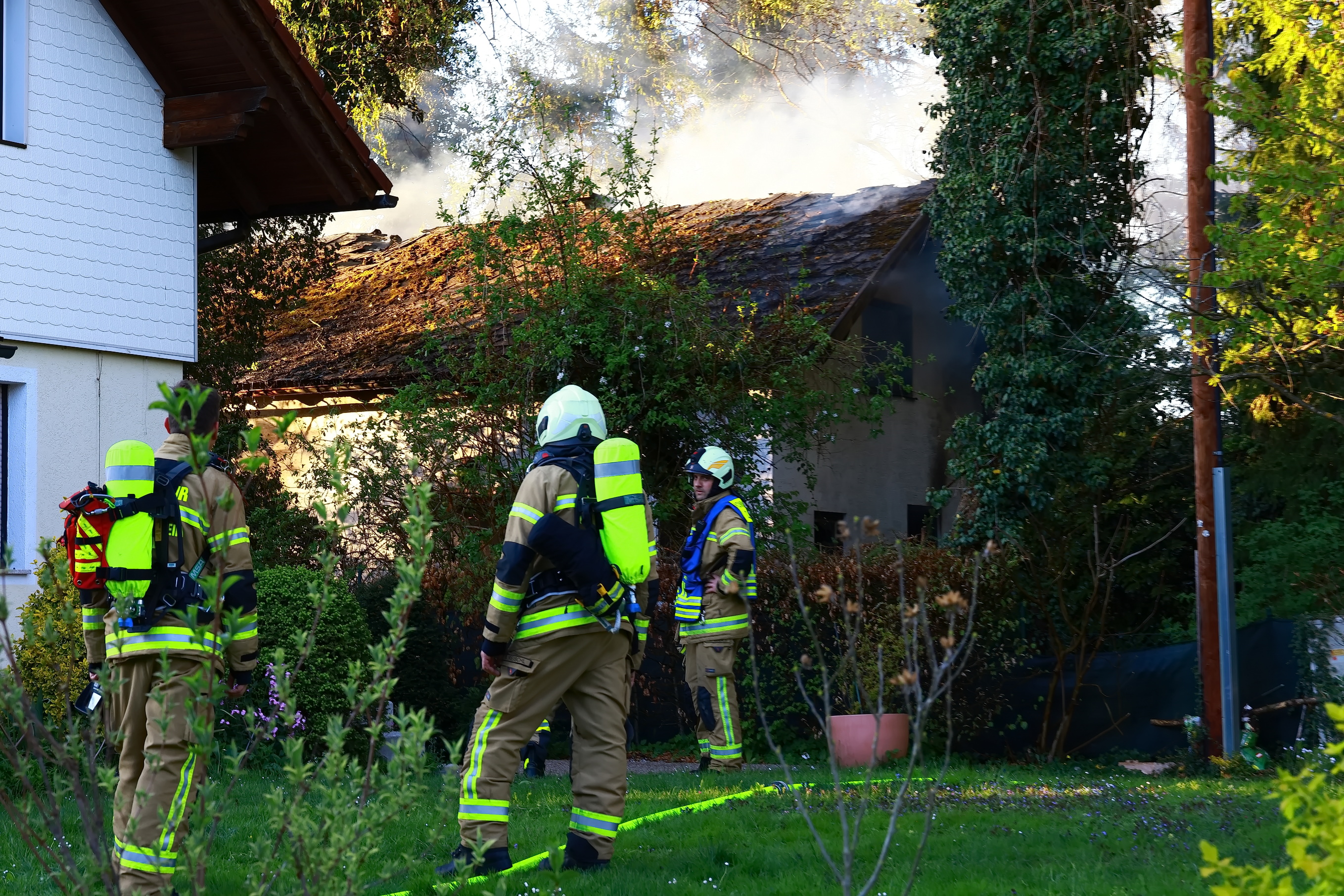Zu einem Hausbrand wurde die Feuerwehr Viehausen gegen 18:45 Uhr in die Uferstrasse alarmiert. Mit 90 Mann und 12 Fahrzeugen waren die Feuerwehren Viehausen, Wals und Siezenheim vor Ort. Dass Rote Kreuz war mit 8 Mann und 4 Fahrzeugen ebenfalls vor Ort. Der Brand konnte nur schwer erreicht werden, da das Gebäude schon länger unbewohnt und dementsprechend das Gelände verwachsen ist. Das Haus wird auch von den Anwohnern mittlerweile als Geisterhaus bezeichnet.