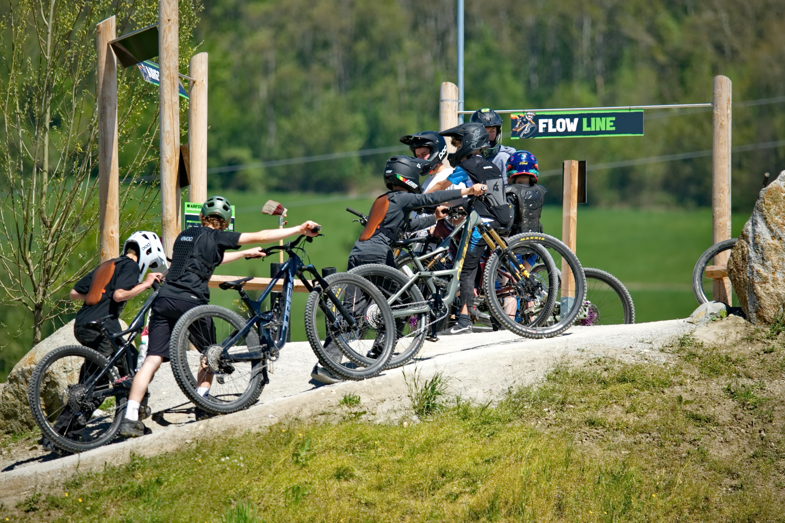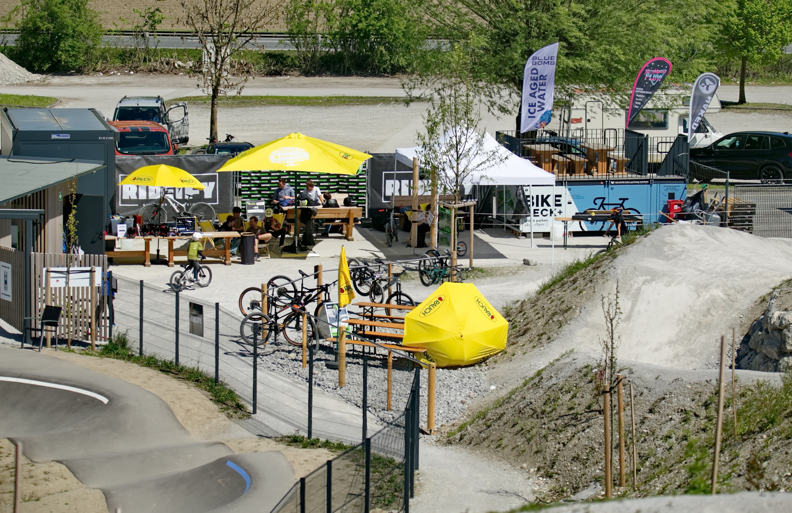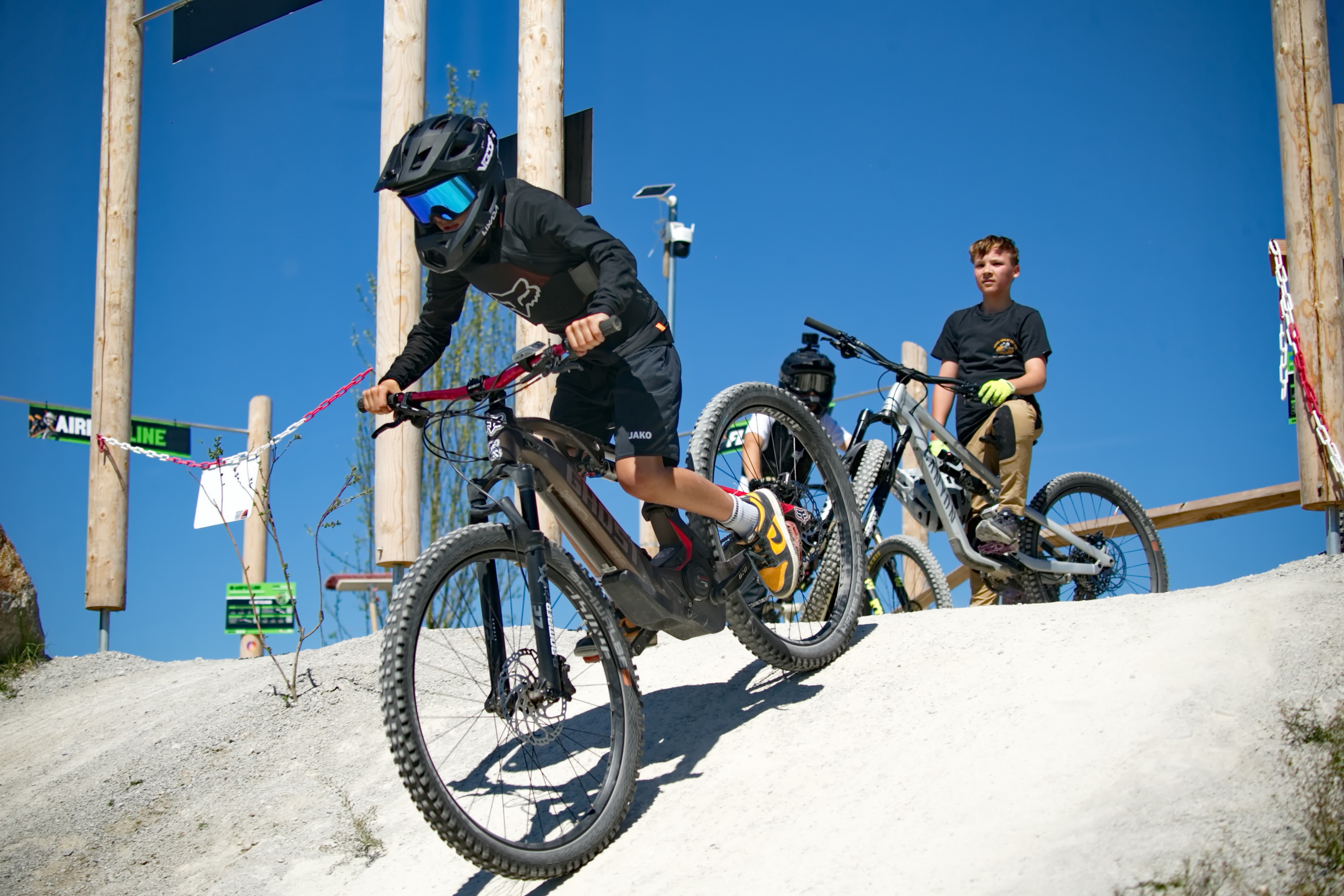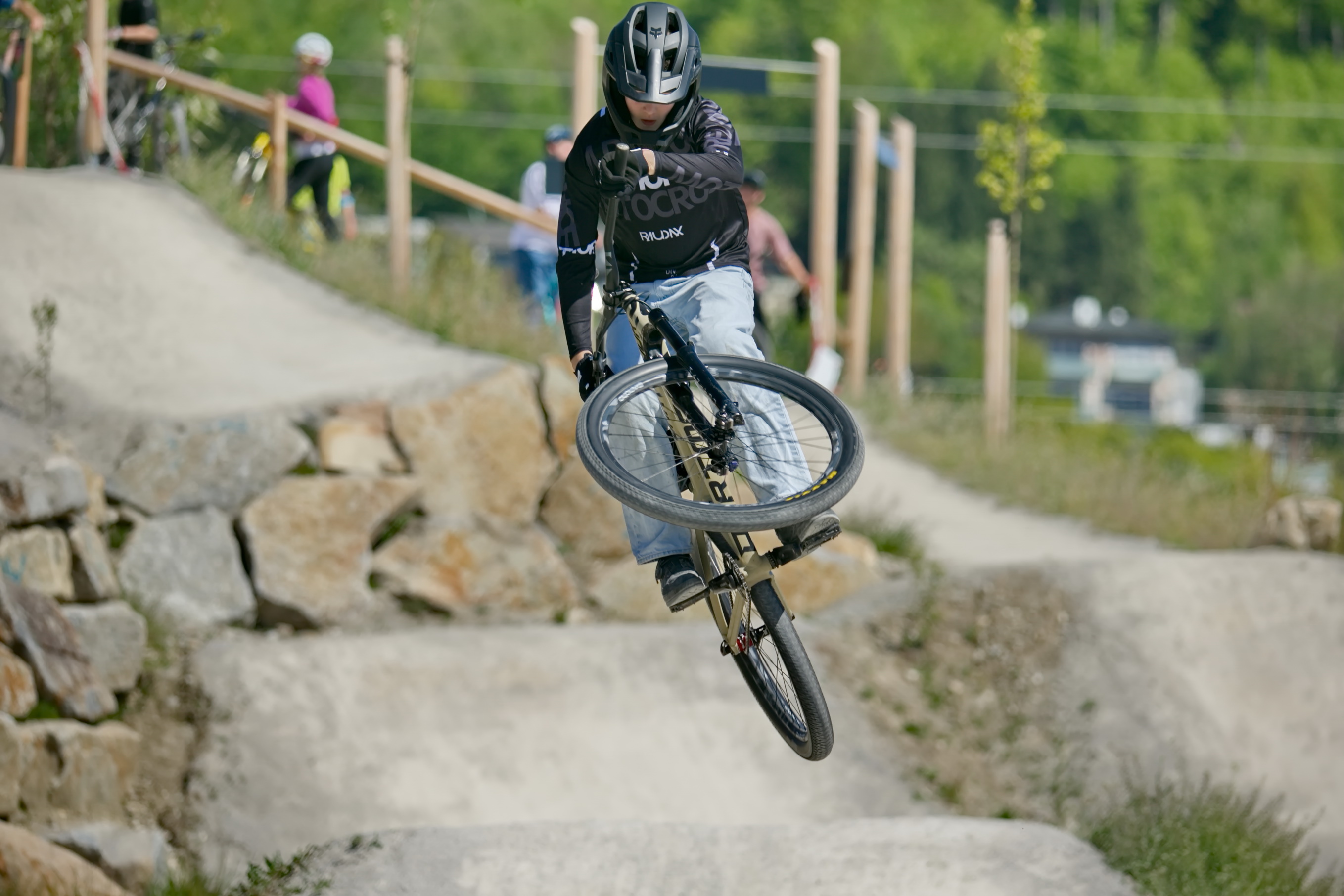 Schon kurz nach der Parkeröffnung zeigte sich, dass der BikePark Bergheim weit über die regionalen Grenzen hinaus Strahlkraft besitzt. Die Kennzeichen auf dem Parkplatz verrieten: Die Rider nahmen teils weite Anreisen auf sich, um beim historischen „First Drop“ dabei zu sein. Das bunte Starterfeld aus internationalen Profis, die mit spektakulären Sprüngen für Staunen sorgten, und motivierten Amateurbiker:innen schuf eine einzigartige Atmosphäre von Gemeinschaft und Sportgeist.