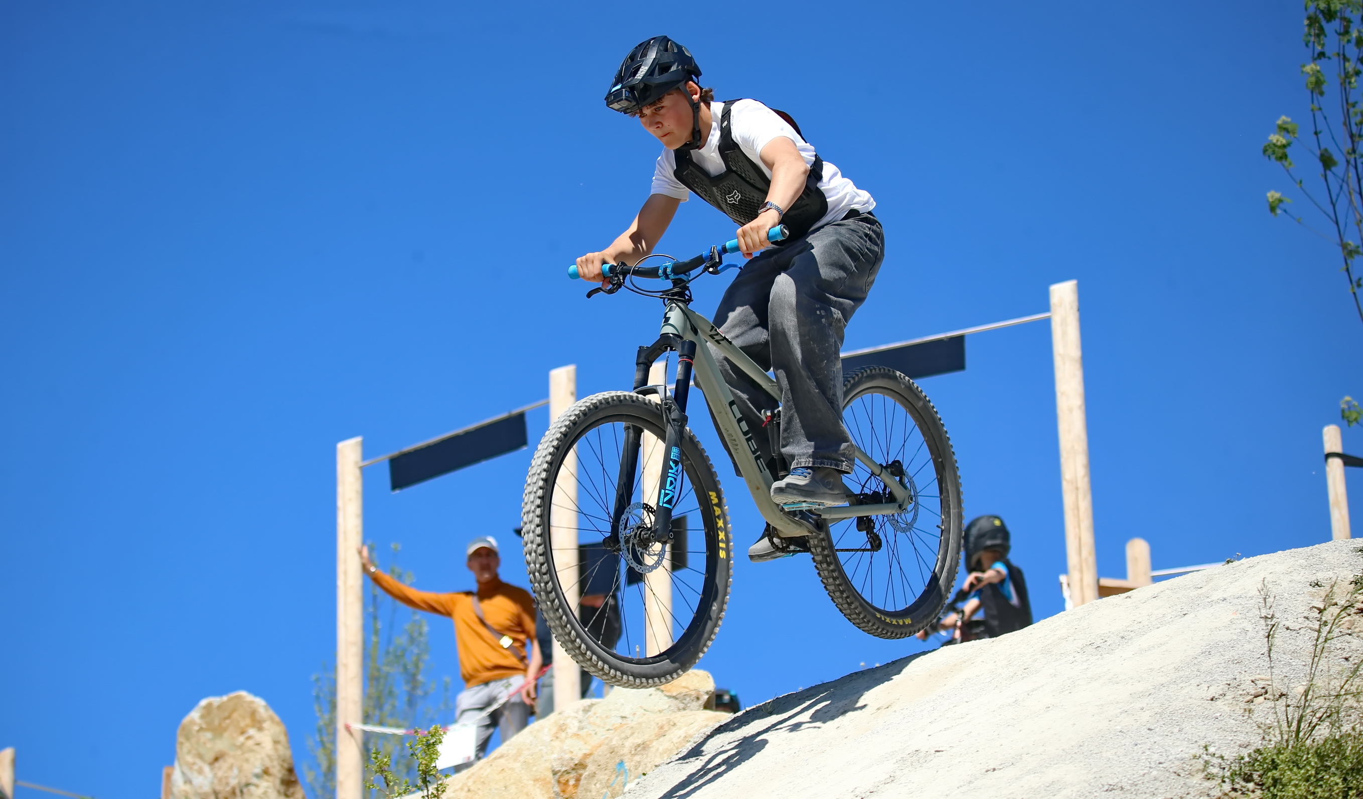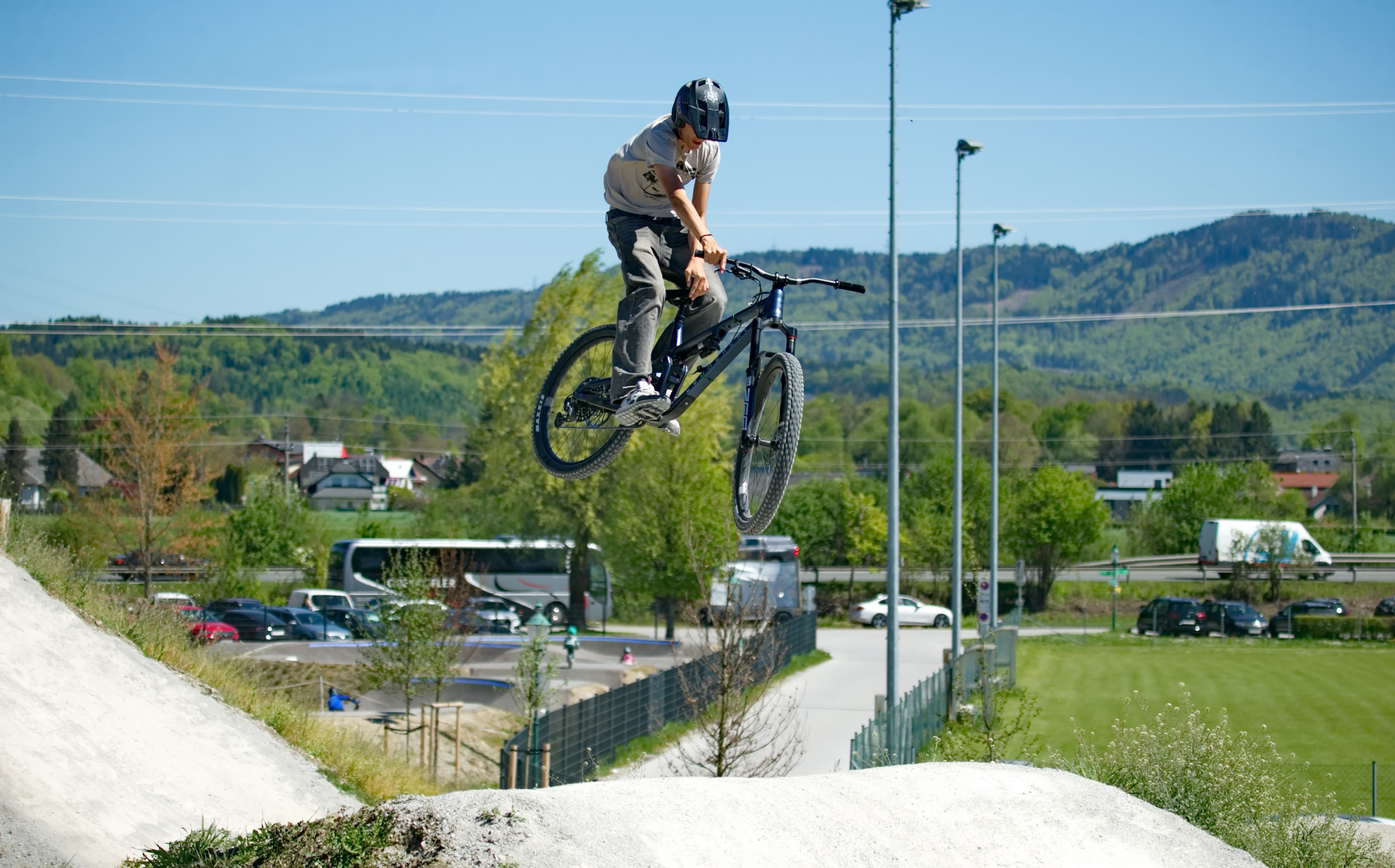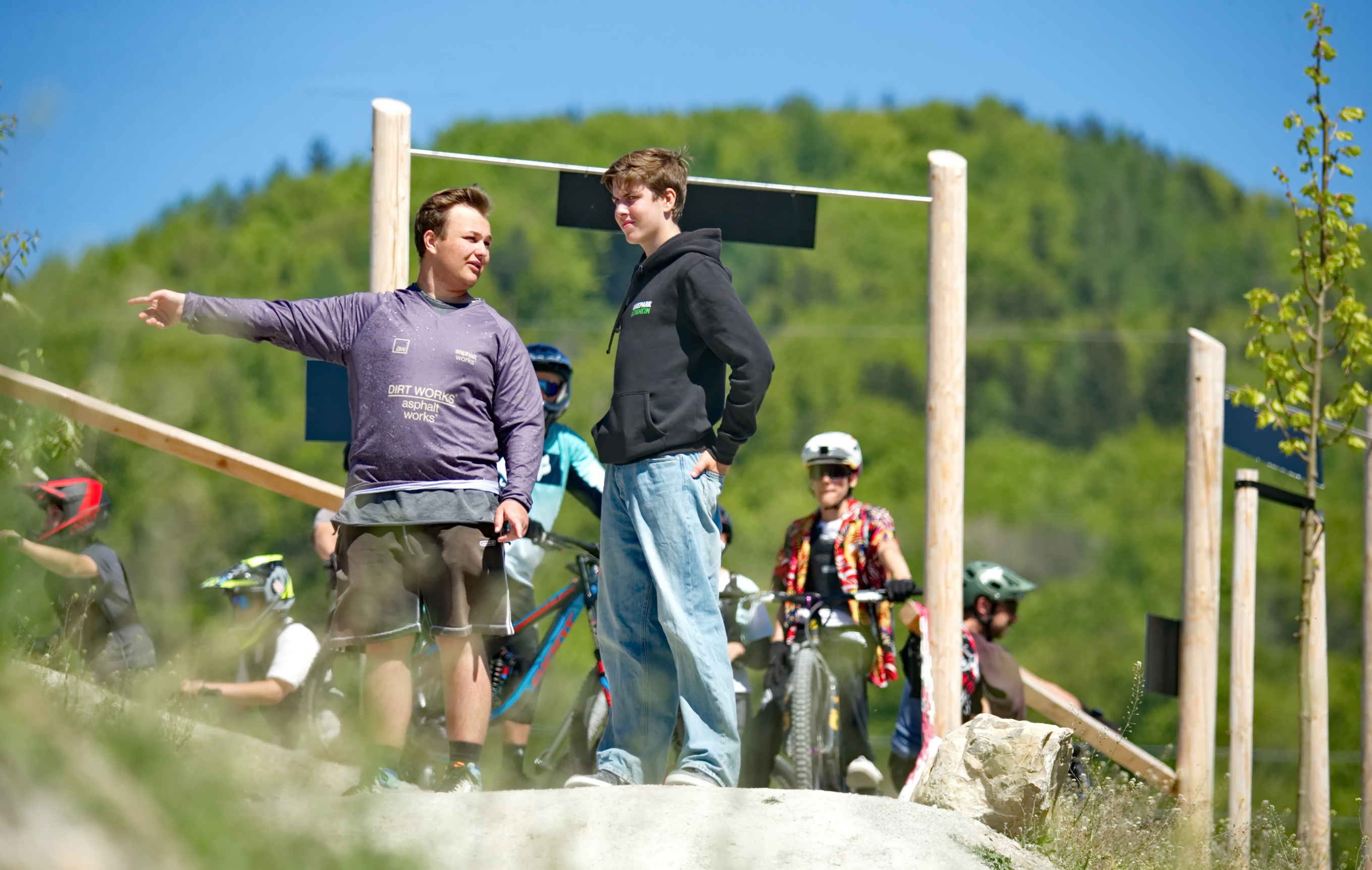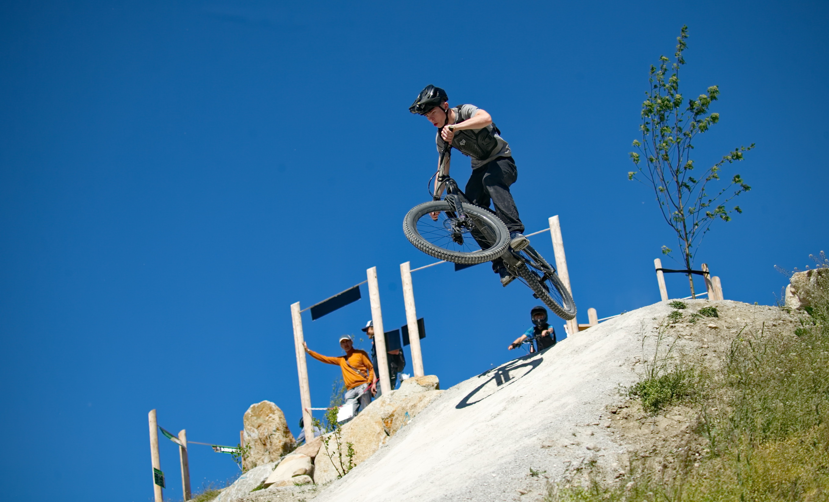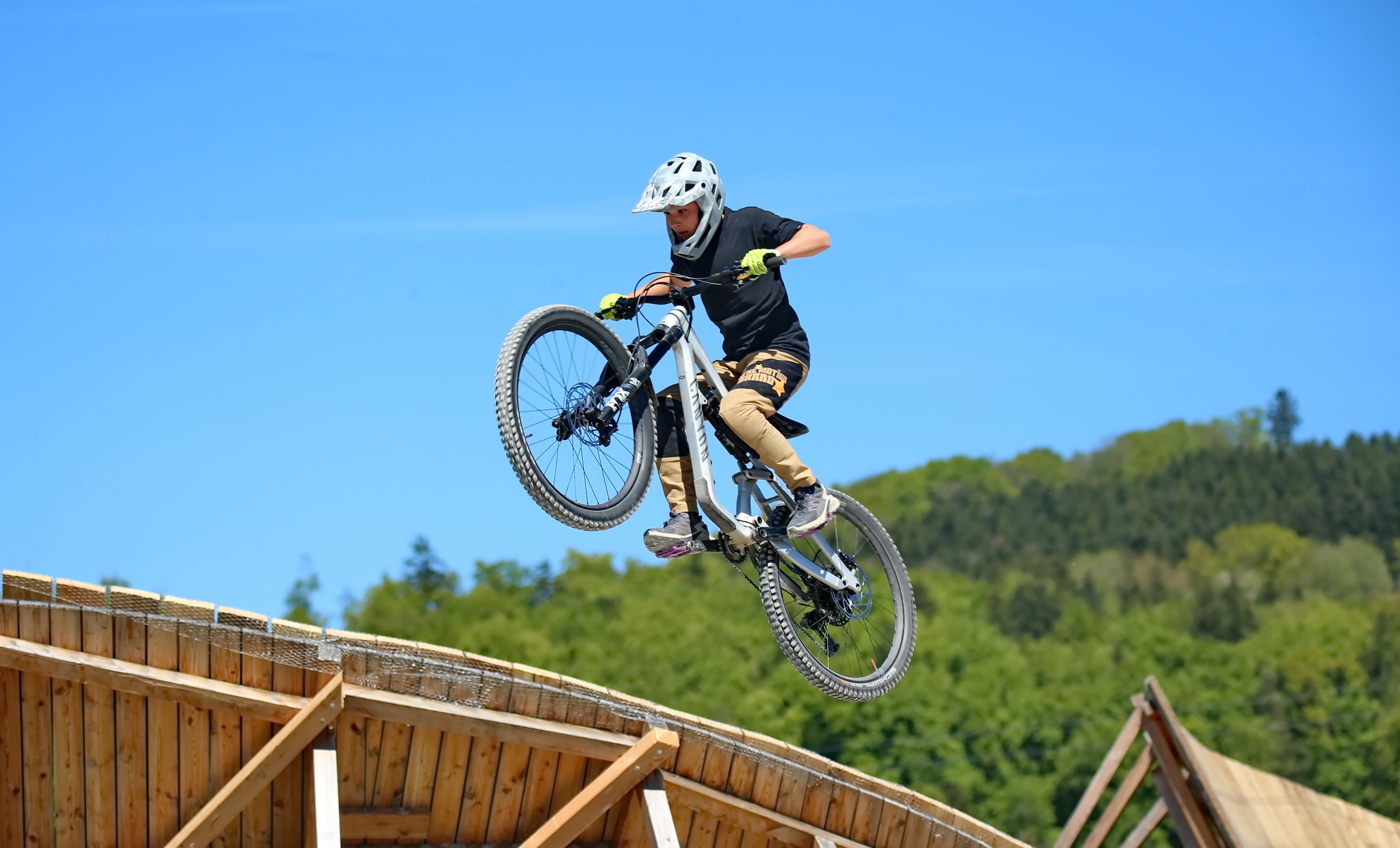 Schon kurz nach der Parkeröffnung zeigte sich, dass der BikePark Bergheim weit über die regionalen Grenzen hinaus Strahlkraft besitzt. Die Kennzeichen auf dem Parkplatz verrieten: Die Rider nahmen teils weite Anreisen auf sich, um beim historischen „First Drop“ dabei zu sein. Das bunte Starterfeld aus internationalen Profis, die mit spektakulären Sprüngen für Staunen sorgten, und motivierten Amateurbiker:innen schuf eine einzigartige Atmosphäre von Gemeinschaft und Sportgeist.