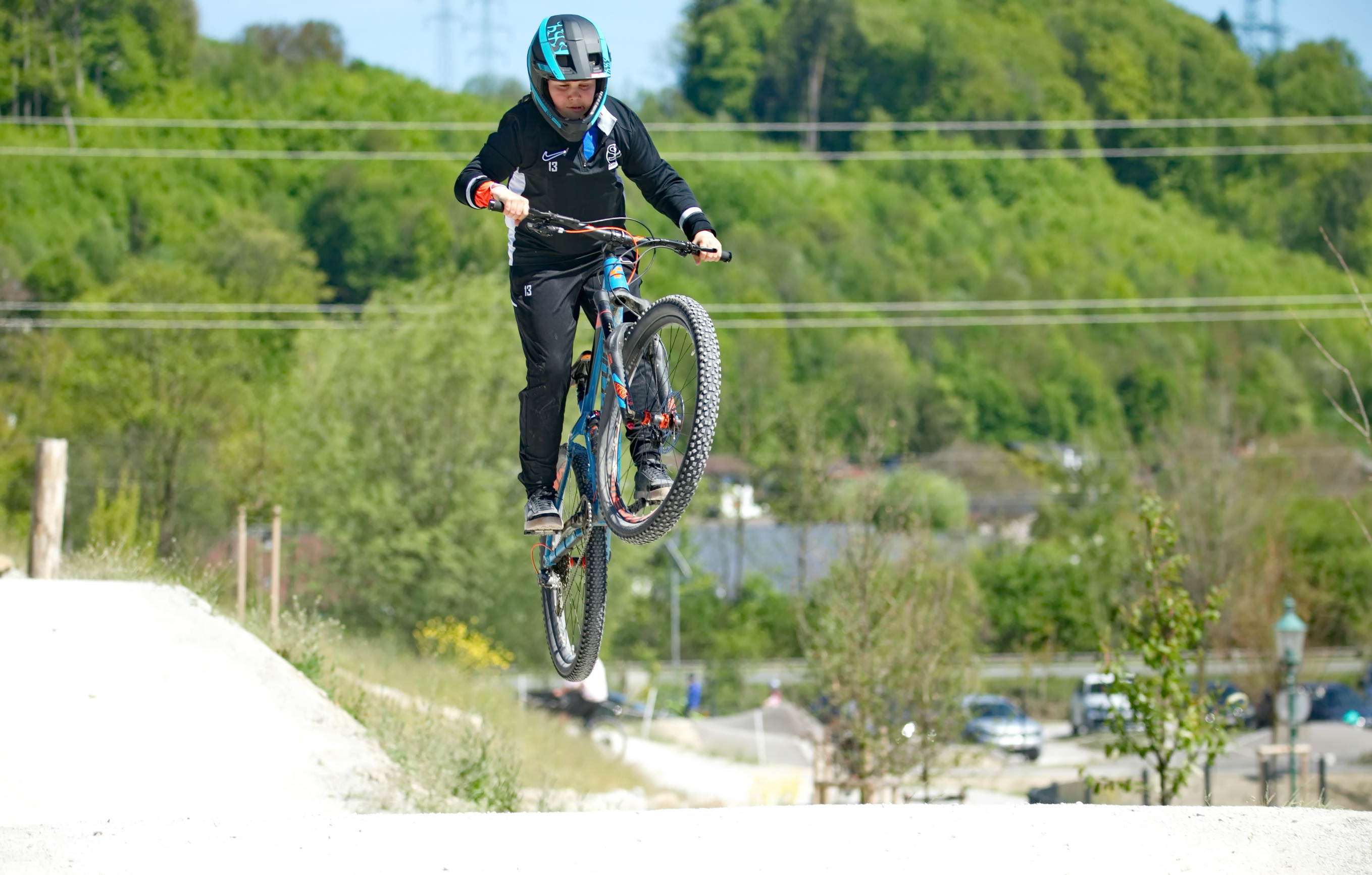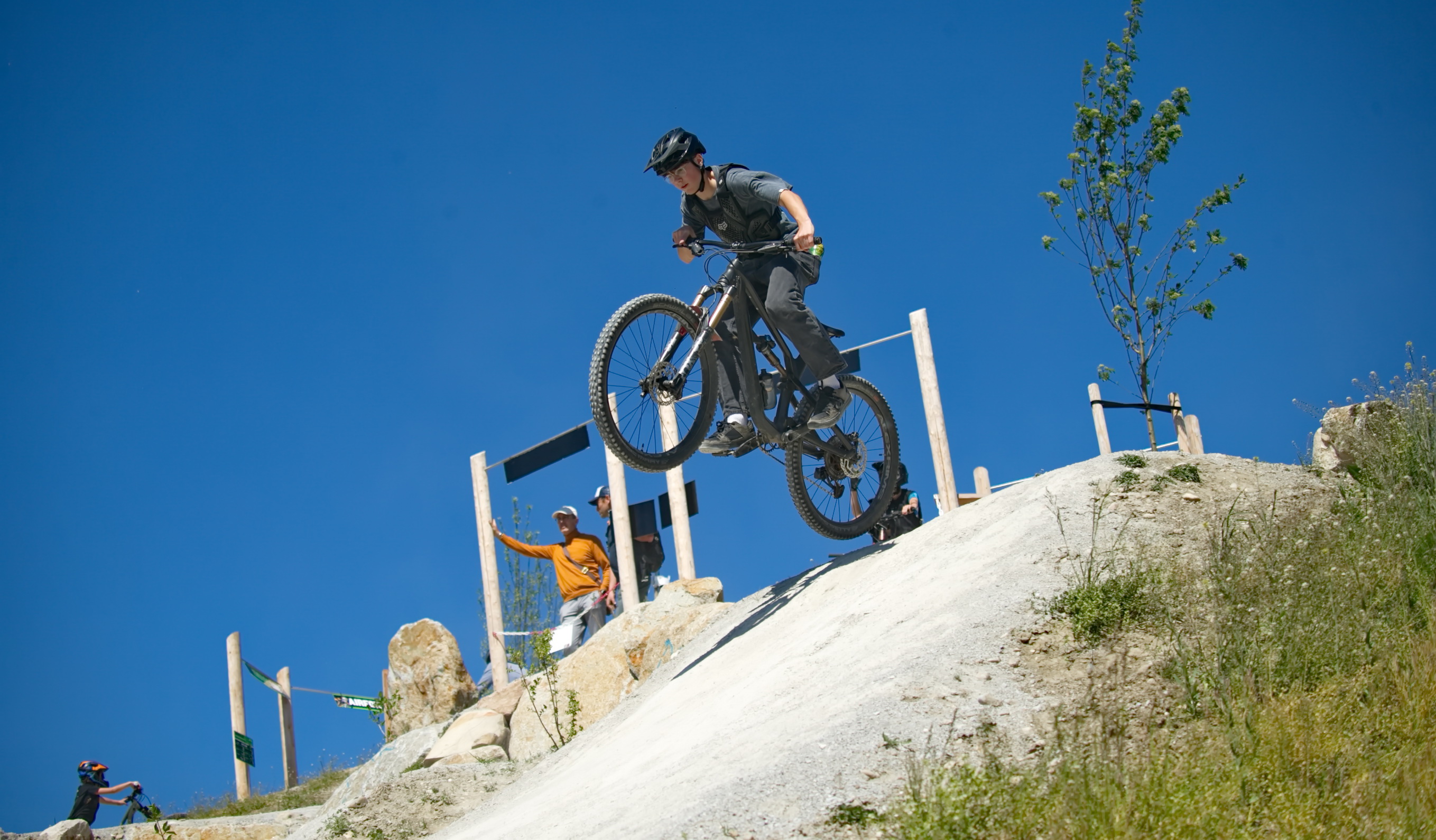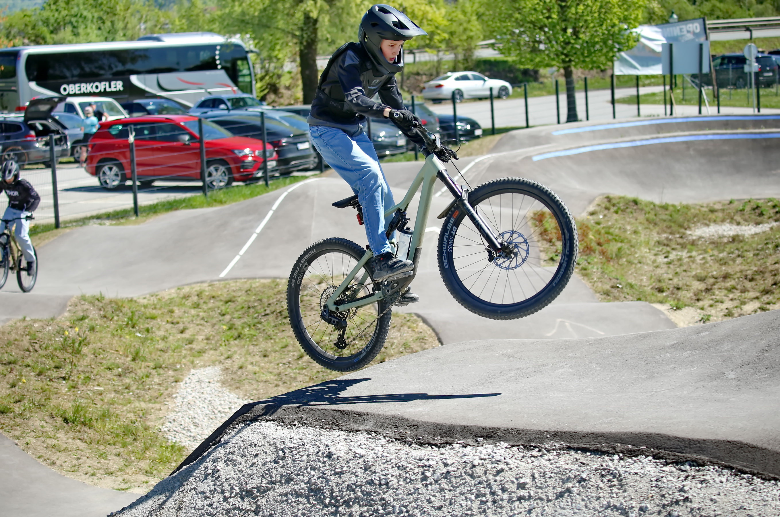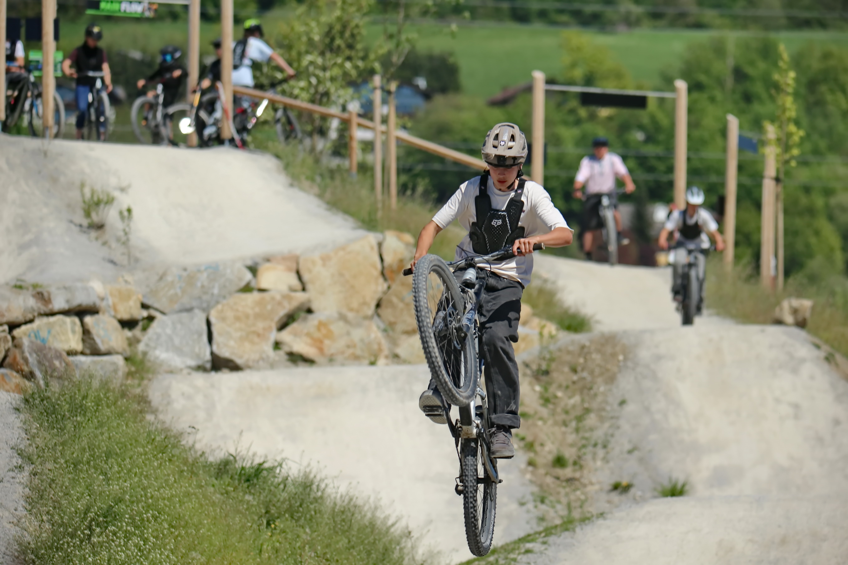 Schon kurz nach der Parkeröffnung zeigte sich, dass der BikePark Bergheim weit über die regionalen Grenzen hinaus Strahlkraft besitzt. Die Kennzeichen auf dem Parkplatz verrieten: Die Rider nahmen teils weite Anreisen auf sich, um beim historischen „First Drop“ dabei zu sein. Das bunte Starterfeld aus internationalen Profis, die mit spektakulären Sprüngen für Staunen sorgten, und motivierten Amateurbiker:innen schuf eine einzigartige Atmosphäre von Gemeinschaft und Sportgeist.