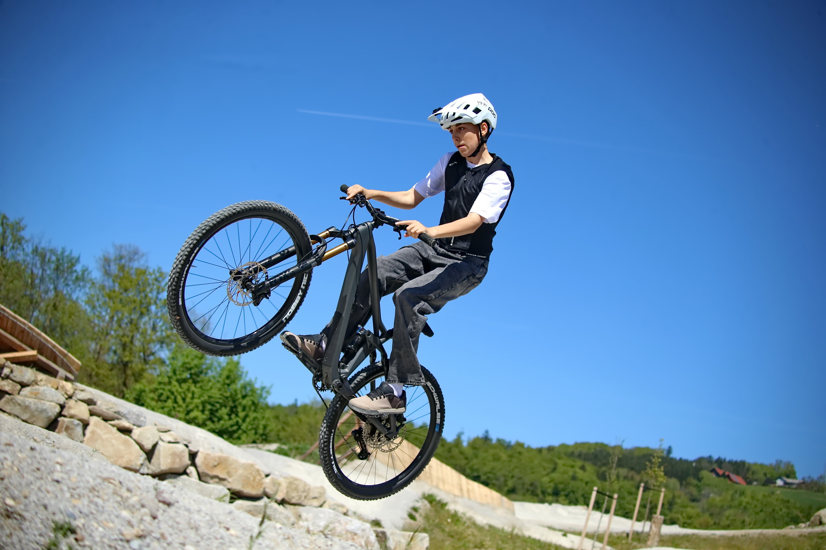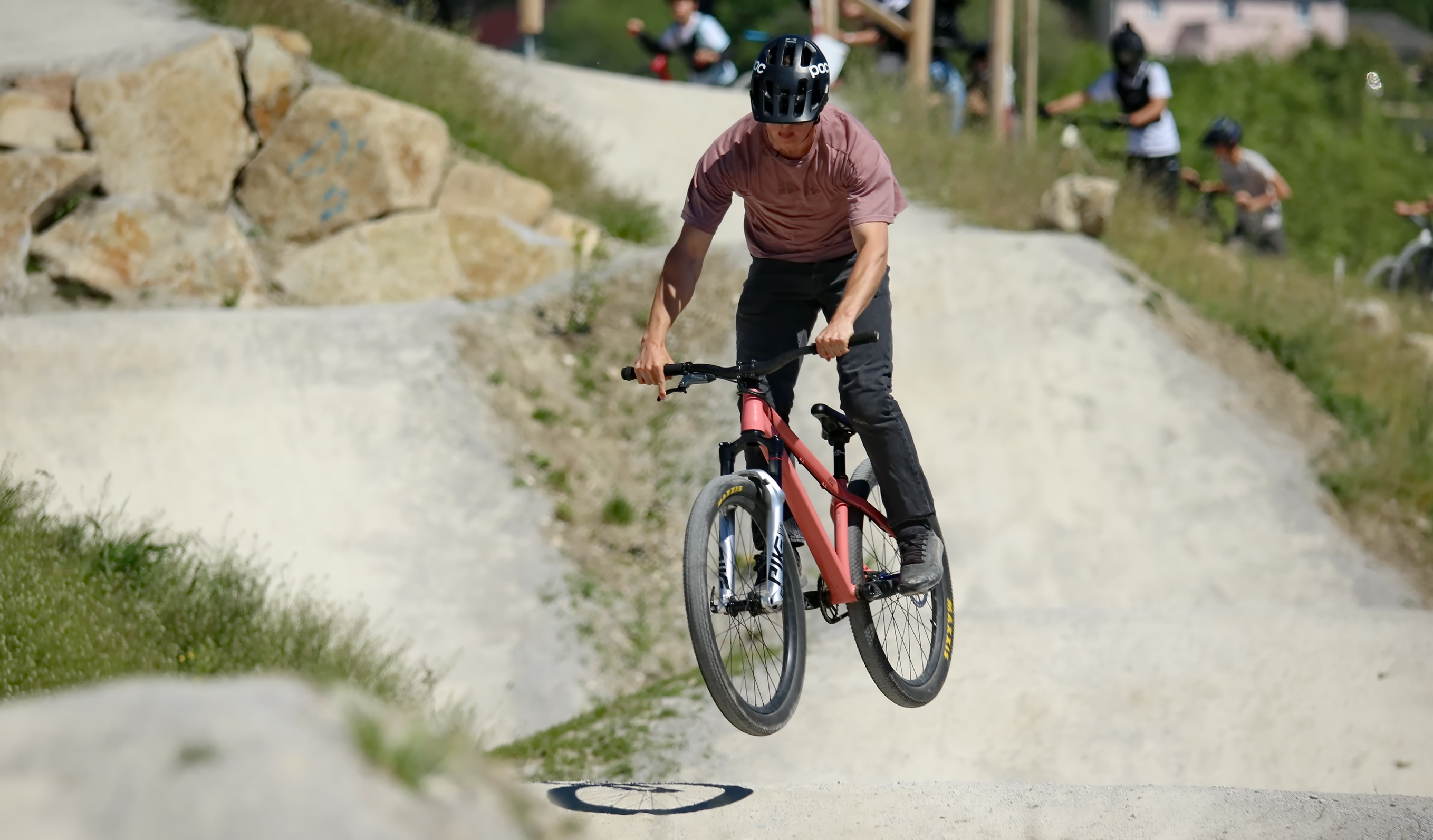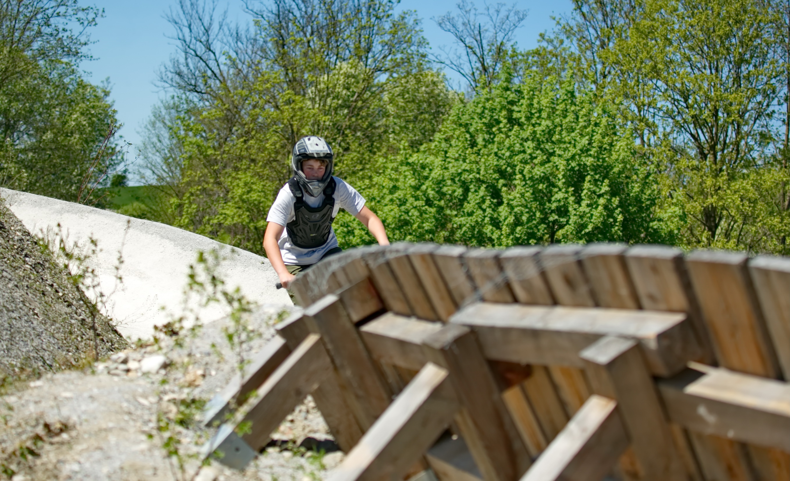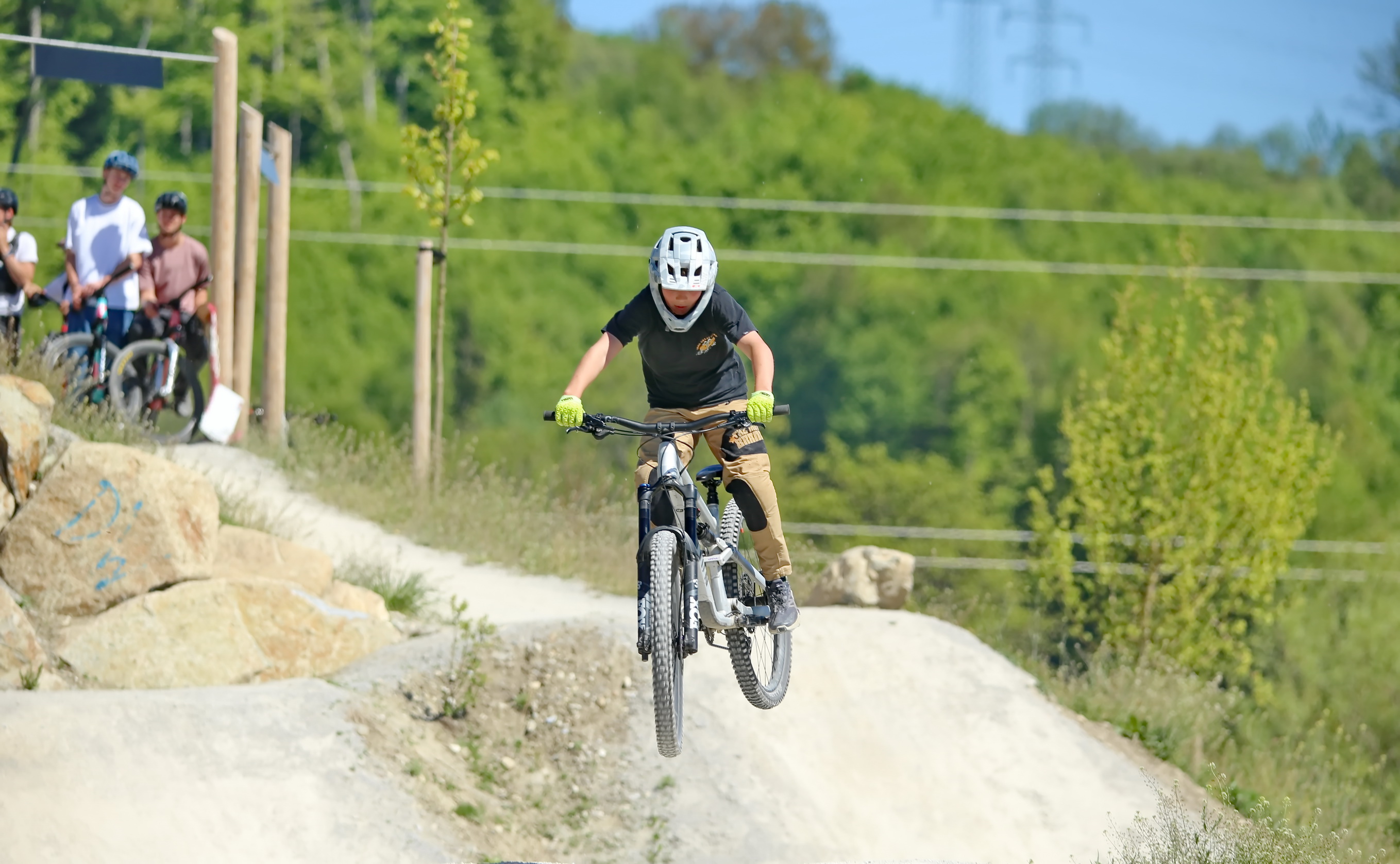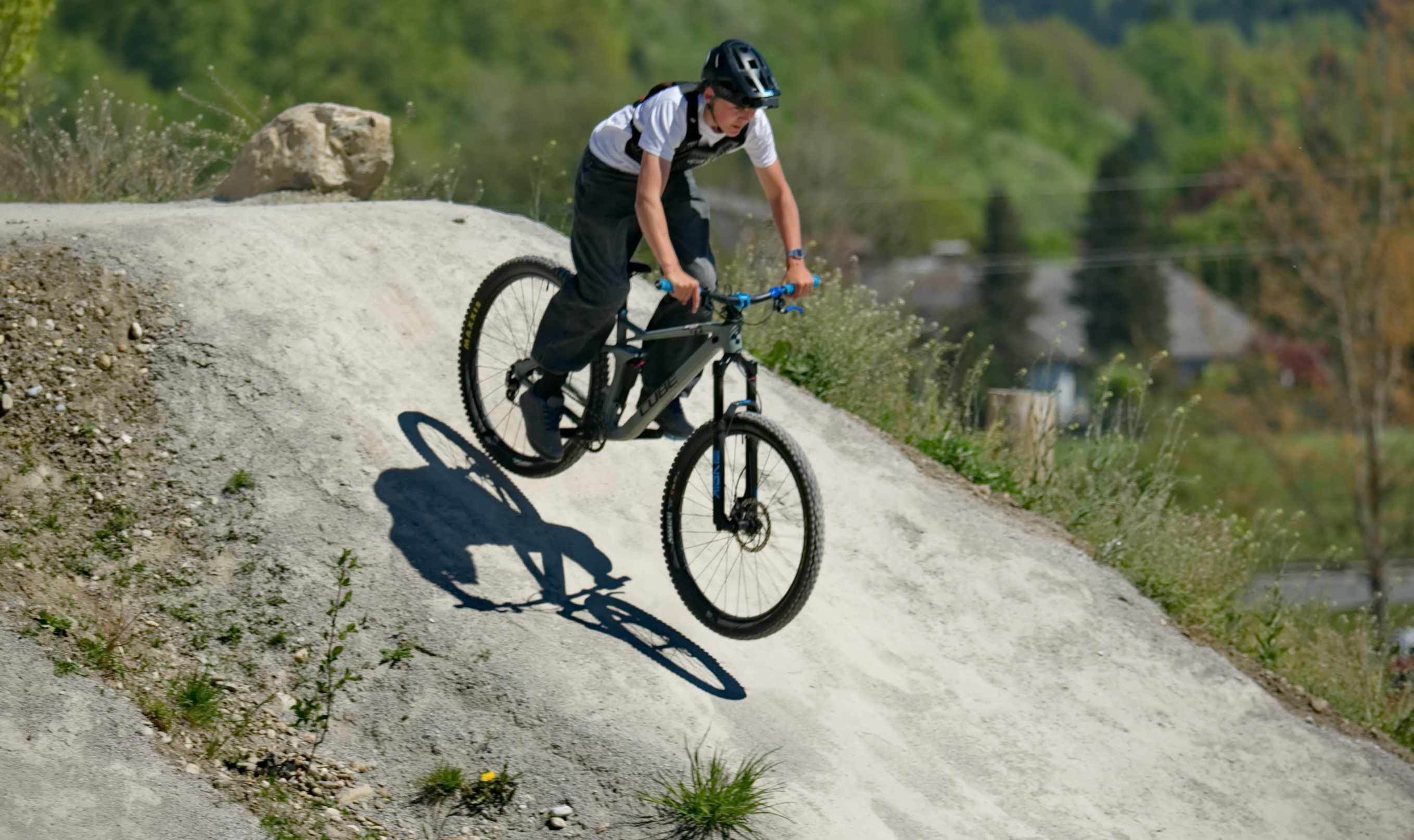 Schon kurz nach der Parkeröffnung zeigte sich, dass der BikePark Bergheim weit über die regionalen Grenzen hinaus Strahlkraft besitzt. Die Kennzeichen auf dem Parkplatz verrieten: Die Rider nahmen teils weite Anreisen auf sich, um beim historischen „First Drop“ dabei zu sein. Das bunte Starterfeld aus internationalen Profis, die mit spektakulären Sprüngen für Staunen sorgten, und motivierten Amateurbiker:innen schuf eine einzigartige Atmosphäre von Gemeinschaft und Sportgeist.