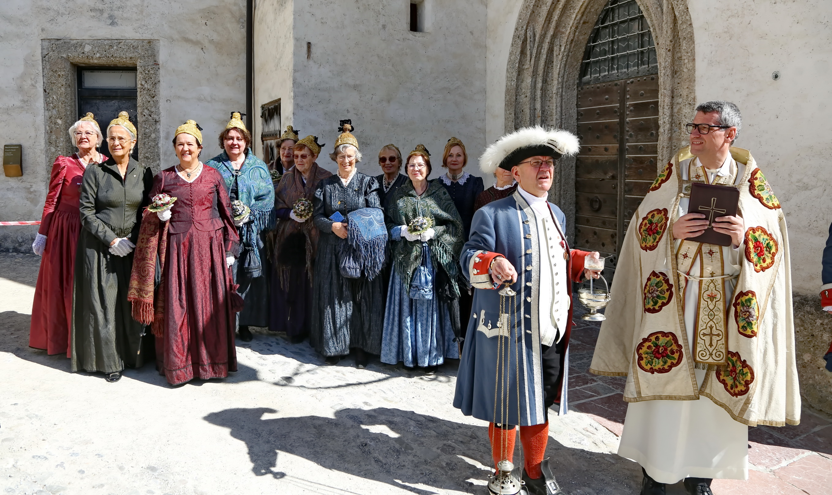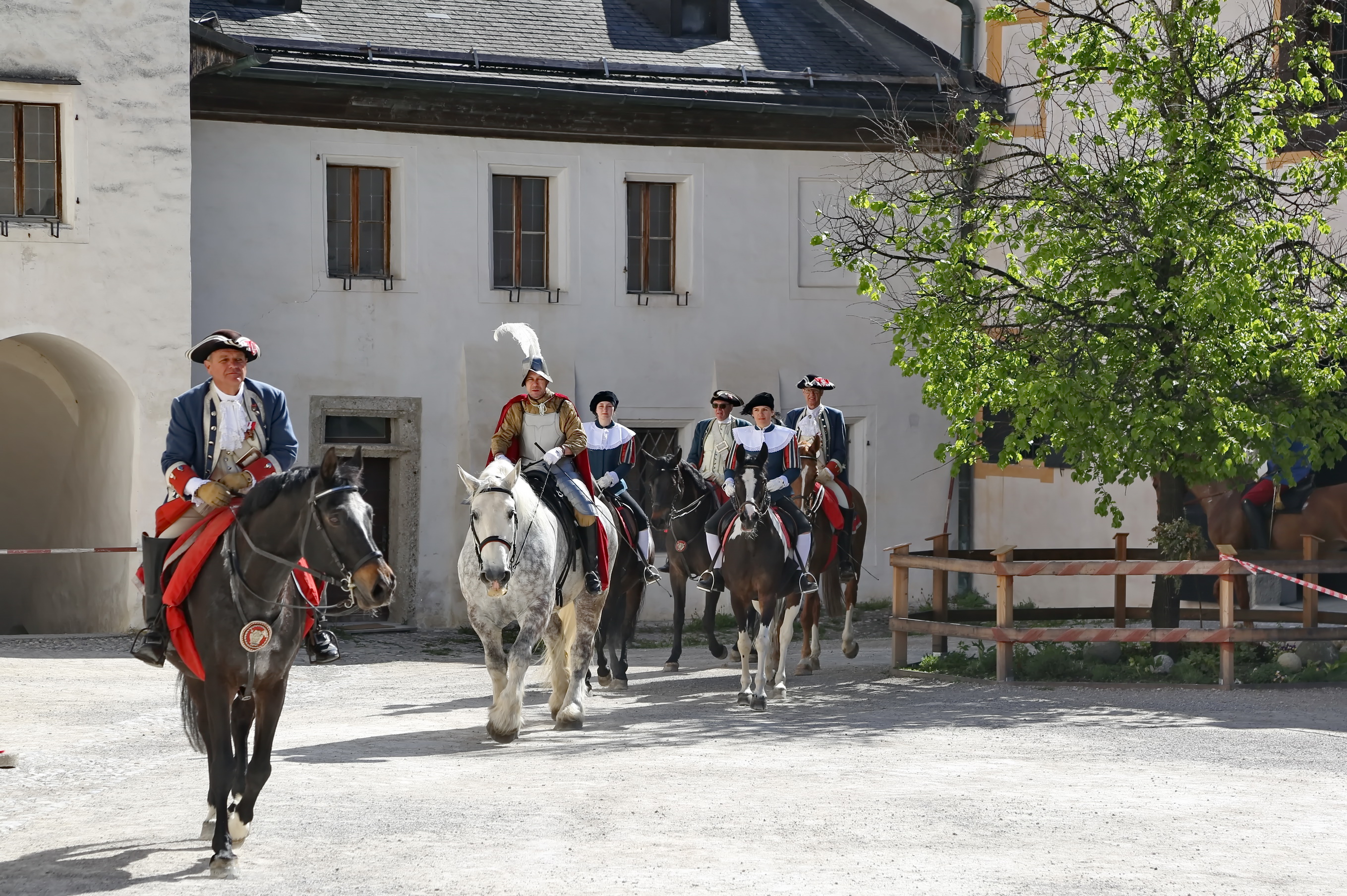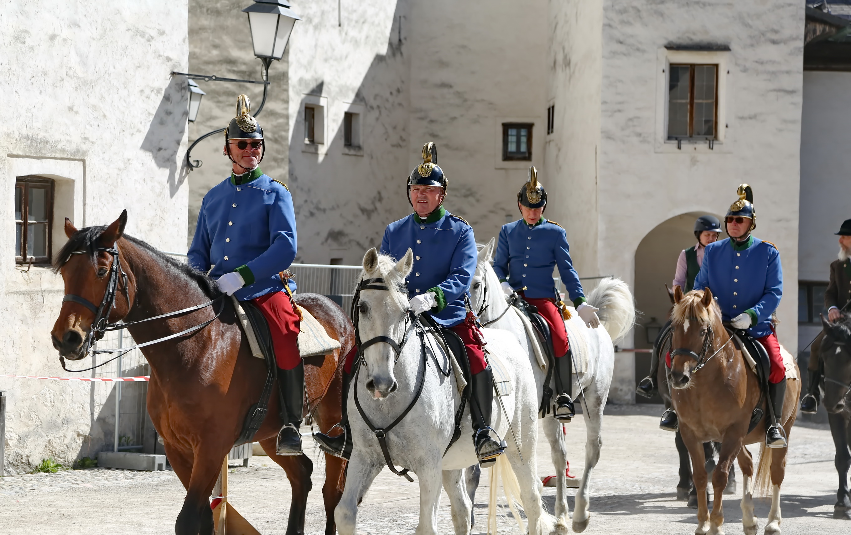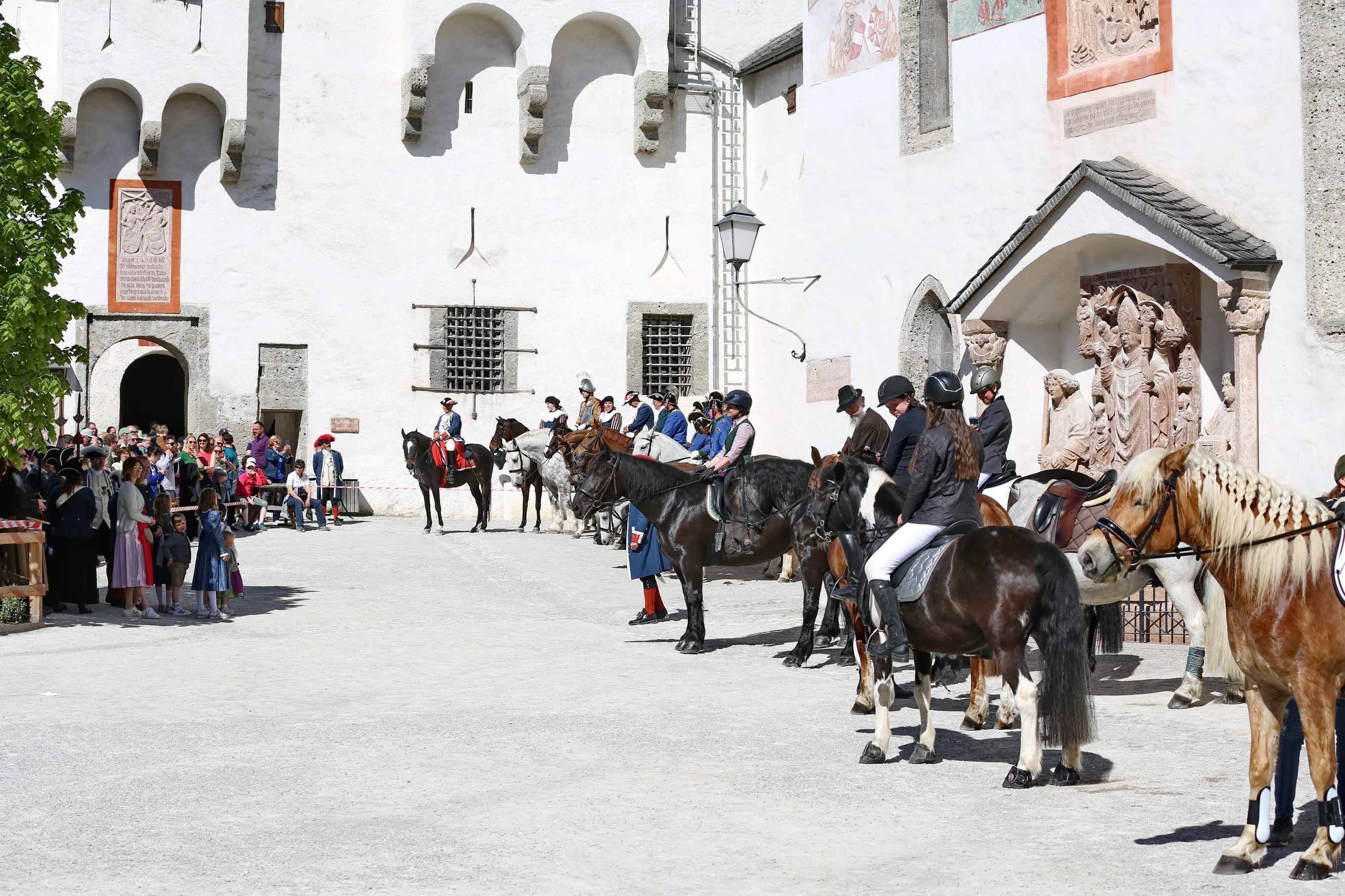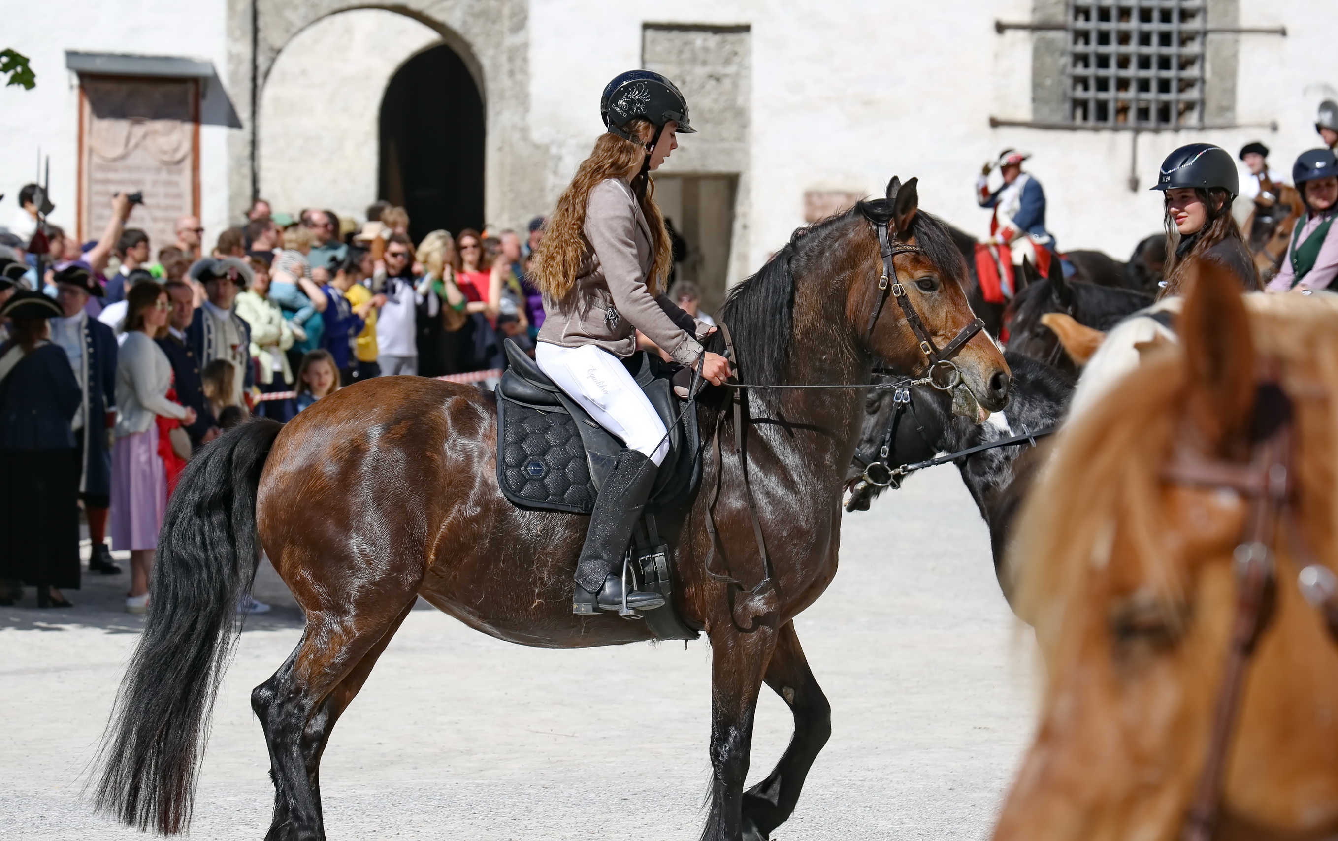 Ab 09:30 Uhr: Aufstellung am Kapitelplatz Die Teilnehmer sammelten sich am Fuße der Festung. Der Kapitelplatz bot hierbei die ideale Kulisse für erste Fotos der traditionellen Gewänder und des festlichen Zaumzeugs.