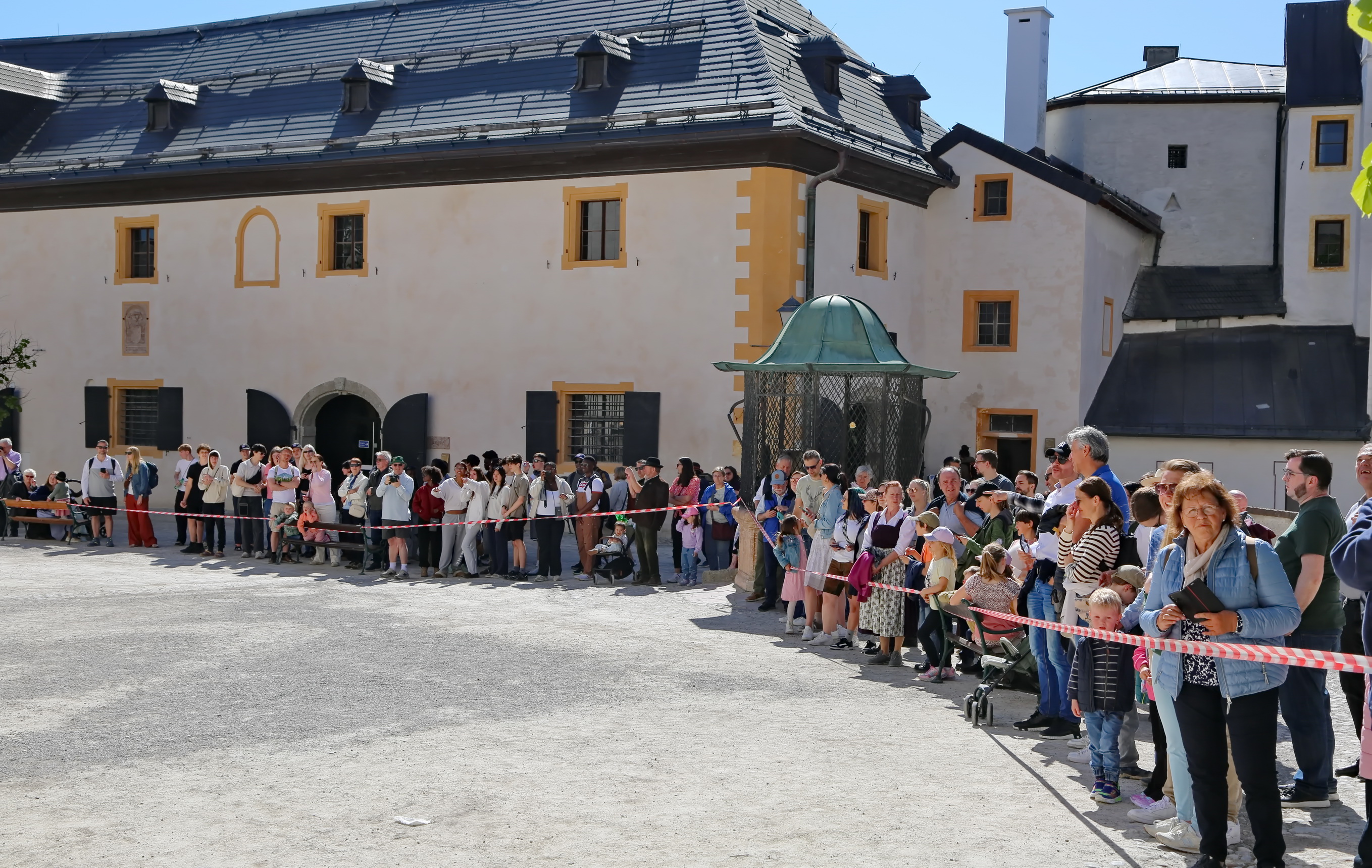 Ca. 10:00 Uhr: Aufstieg zur Festung Der Tross begann den markanten Aufstieg über die Festungsgasse hinauf zur Festung Hohensalzburg.