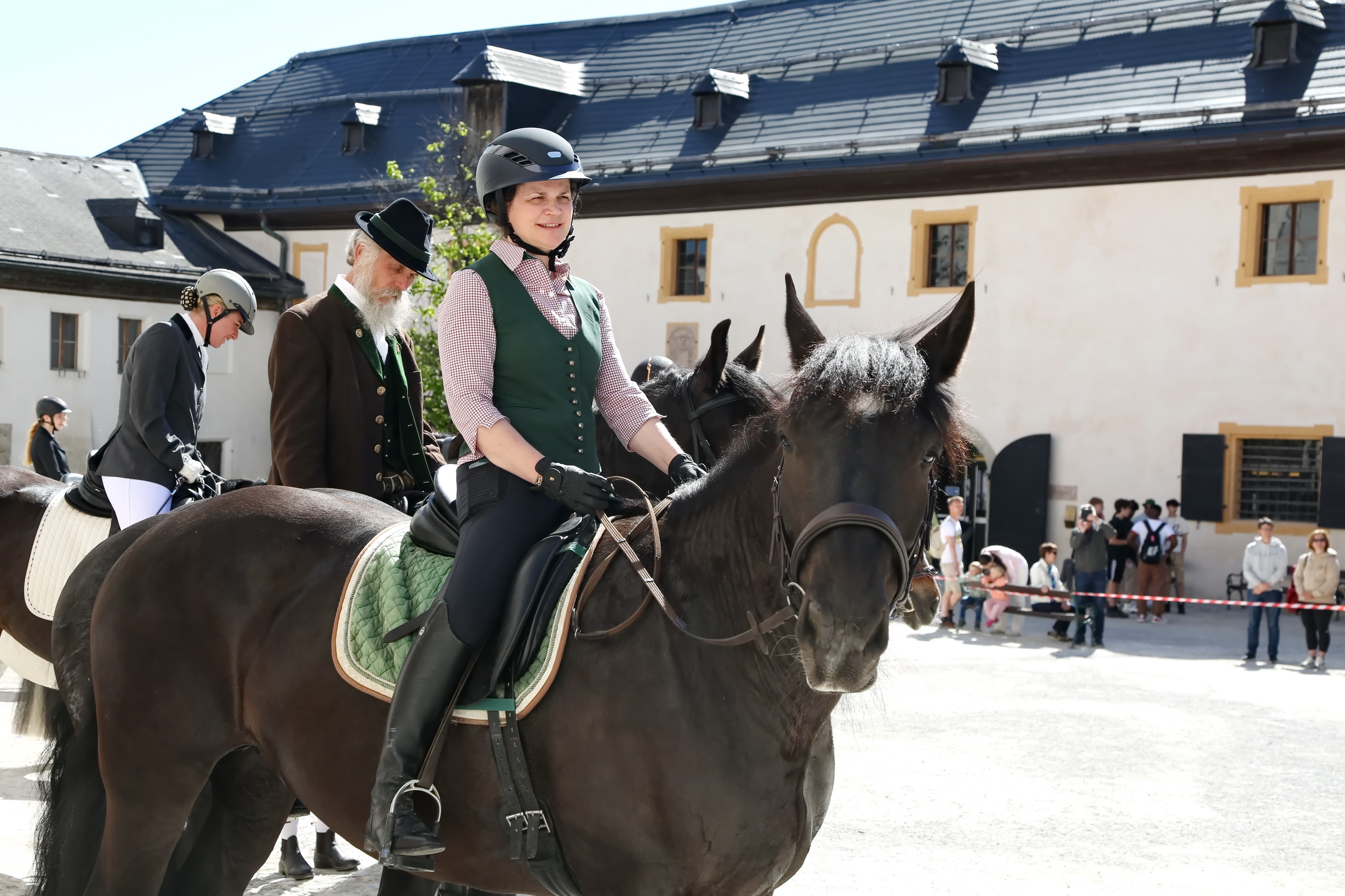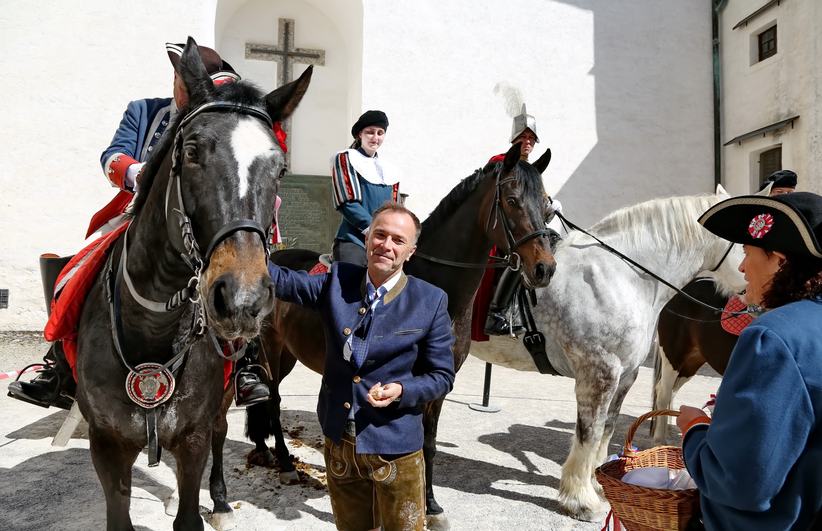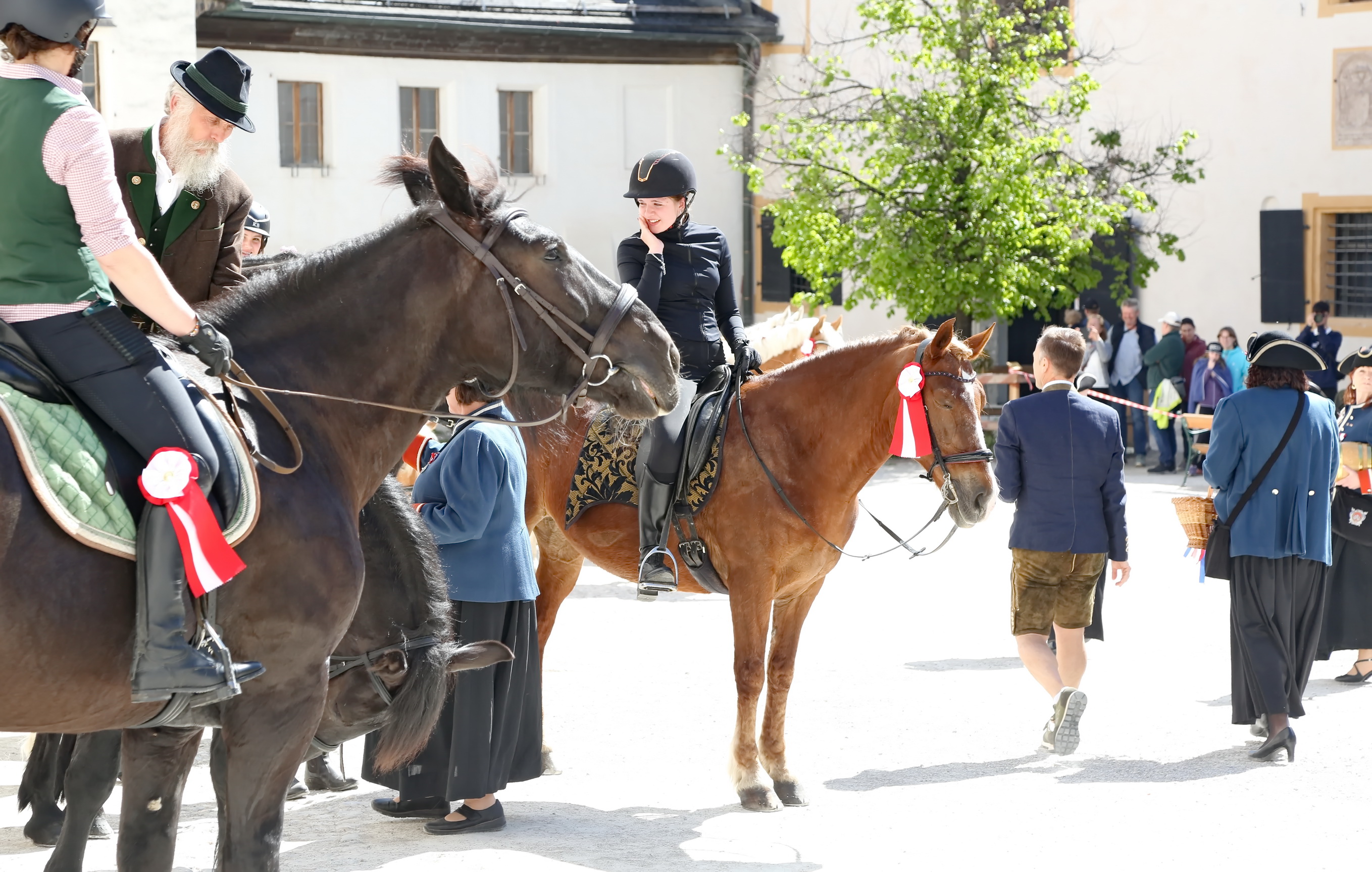 Ca. 10:30 Uhr: Pferdesegnung im Großen Burghof Den spirituellen Höhepunkt bildete die feierliche Pferdesegnung im Großen Burghof der Festung. Hier kamen Reiter, Ehrengäste und Besucher zusammen, um die Zeremonie unter freiem Himmel zu begleiten.