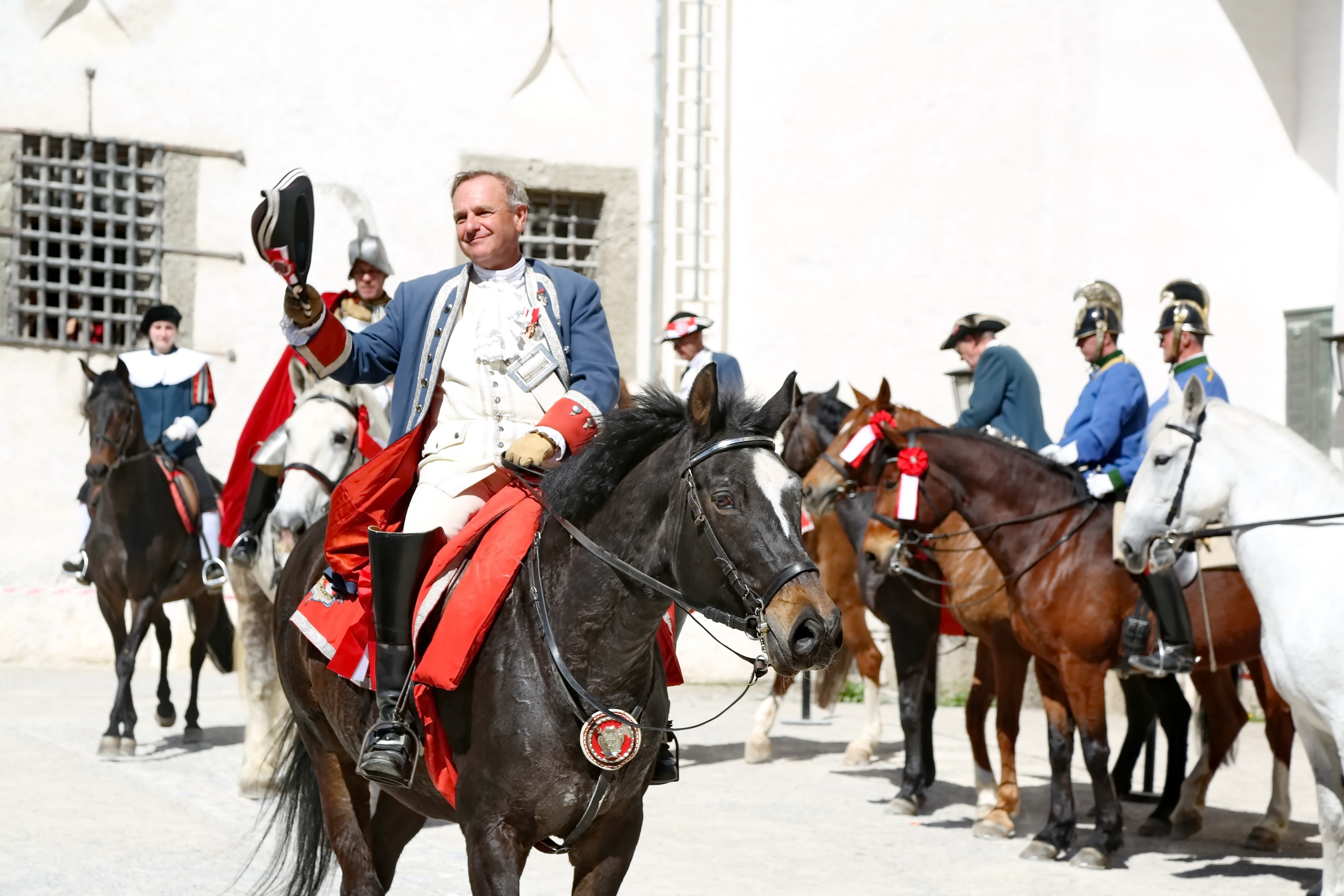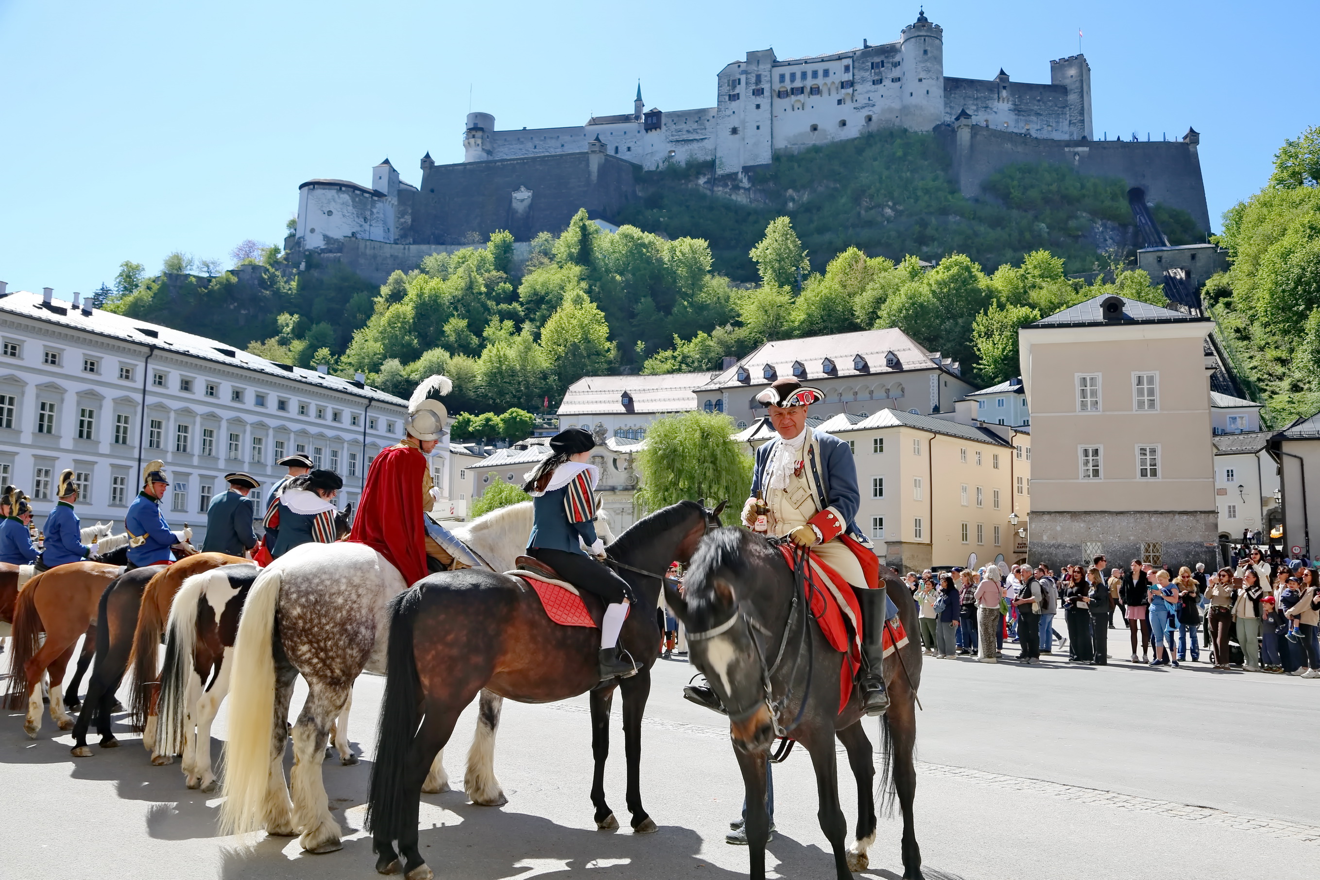 Ca. 09:45 Uhr: Beginn des Festzuges Der Ritt setzte sich in Bewegung und führte die Reiter durch die historischen Gassen der Salzburger Altstadt.