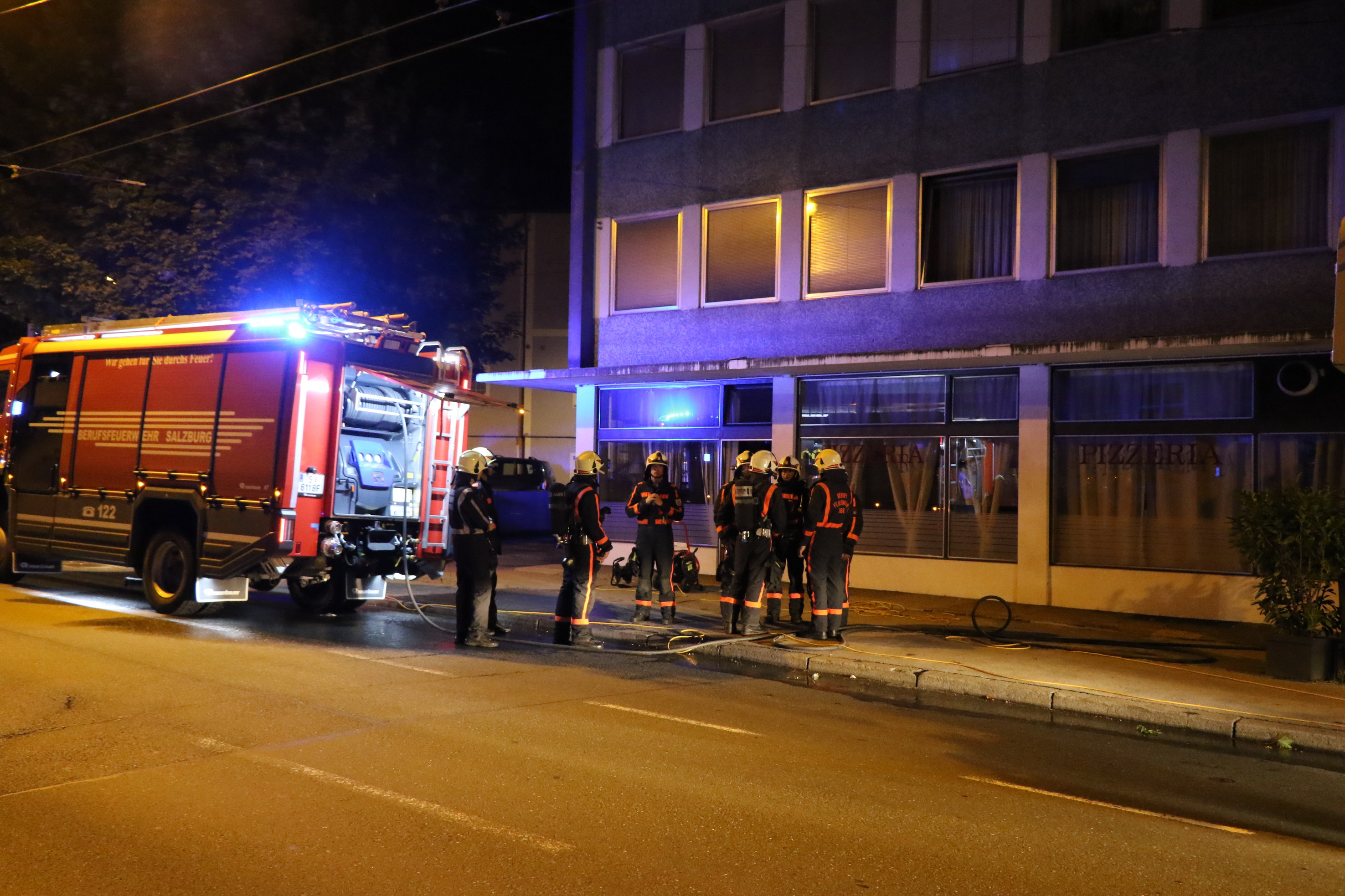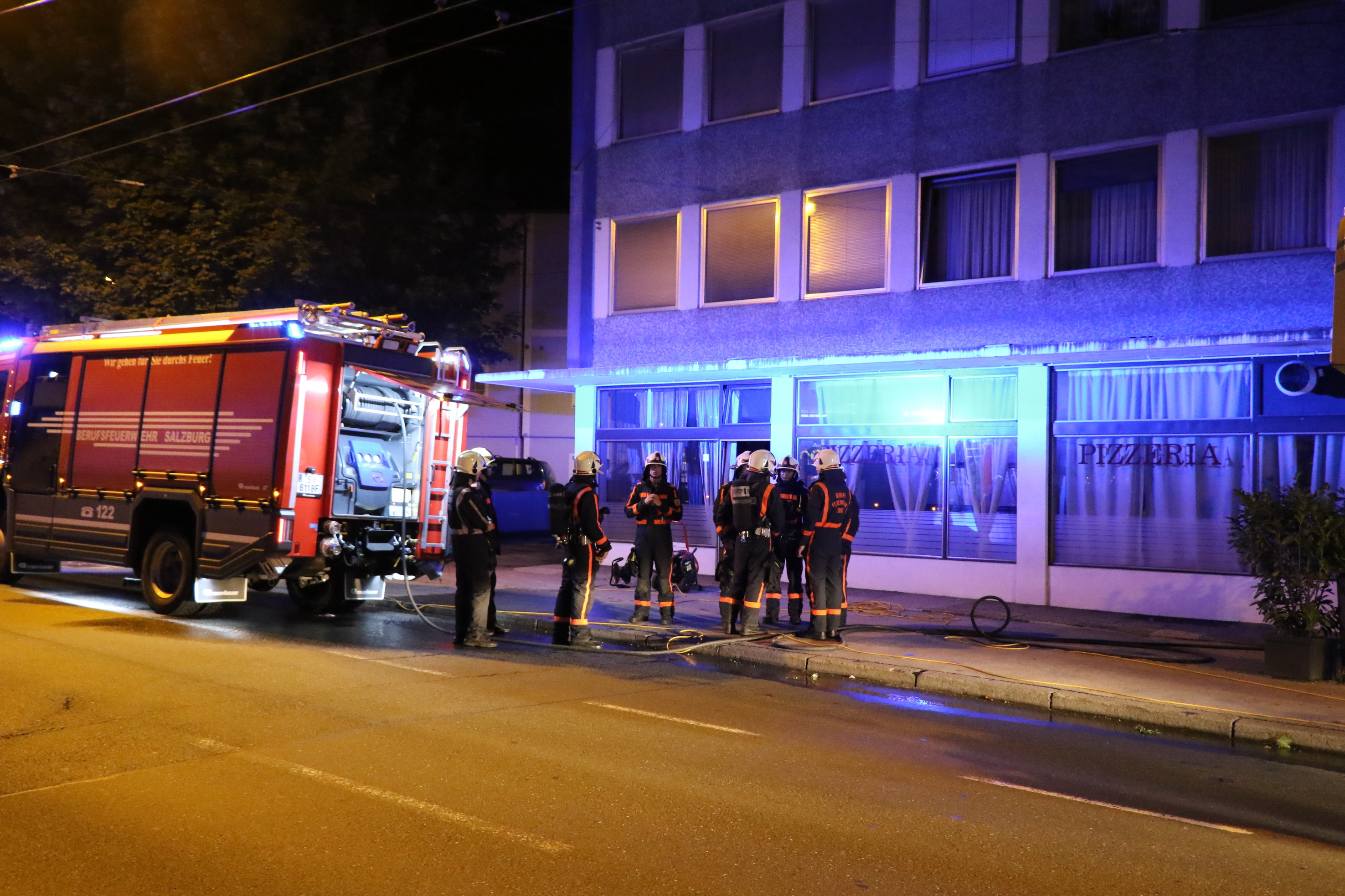 Zu einem Brand in die Linzer Bundesstraße 16 wurde heute die BF und FF der Stadt Salzburg gerufen. In einer Pizzeria ist ein Brand im Bereich des E- Herd ausgebrochen. Zum Glück war der Betreiber noch mit einem Koch im Lokal und so konnte sofort die Feuerwehr alarmiert werden, welche den Brand schnell löschen konnte. Auf Grund der starken Rauchentwicklung musste das Gebäude zwangsbelüftet werden. Die genaue Brandursache muss noch ermittelt werden.